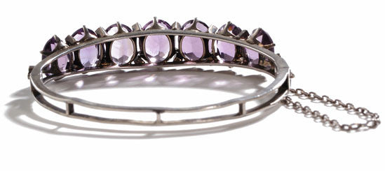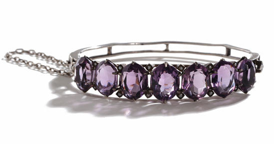 Late 19th century silver European bangle with amethysts and natural pearls.