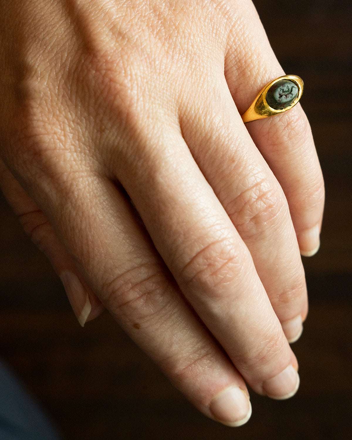Ancient Bloodstone Salamander Intaglio Pinkie Ring