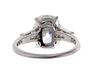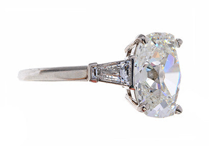 3.18 carat central diamond cut in the 19th century and mounted by Oscar Heyman in the 1900's with tapered baguette cut diamonds in platinum. The central diamond is certified by the GIA to be H in color and VS2. This diamond is of a particularly fine make for the time period in which it was originally faceted.