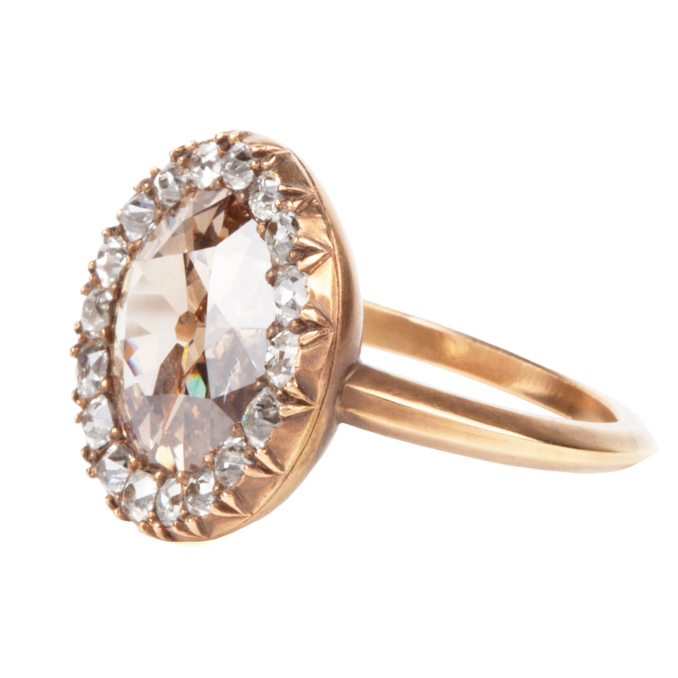 Handmade in our Texas workshop, this ring is in our custom blend of 18K rose gold. A more subdued, darker tone than commercially available rose gold. We call this color "old gold" and created the alloy in the spirit of the many 19th century rings we have handled.
