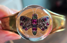 Antique Gold Bangle w/ central Cabochon rock crystal and multi-gemstone set butterfly