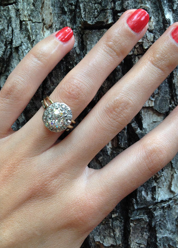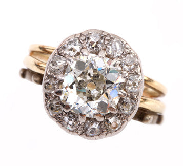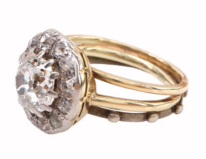 Circa 1880's European old mine cut diamond ring with diamond halo. Found in Switzerland.