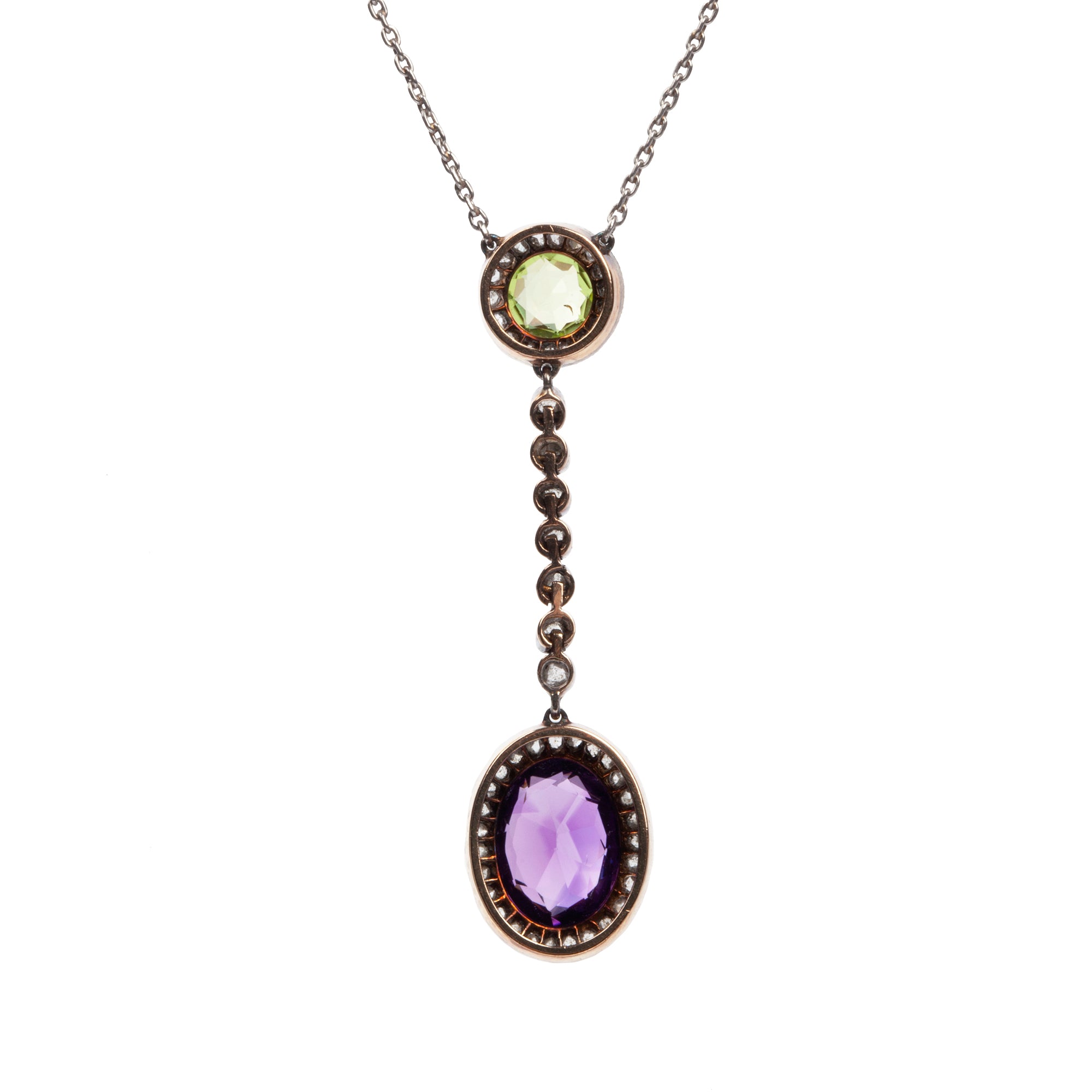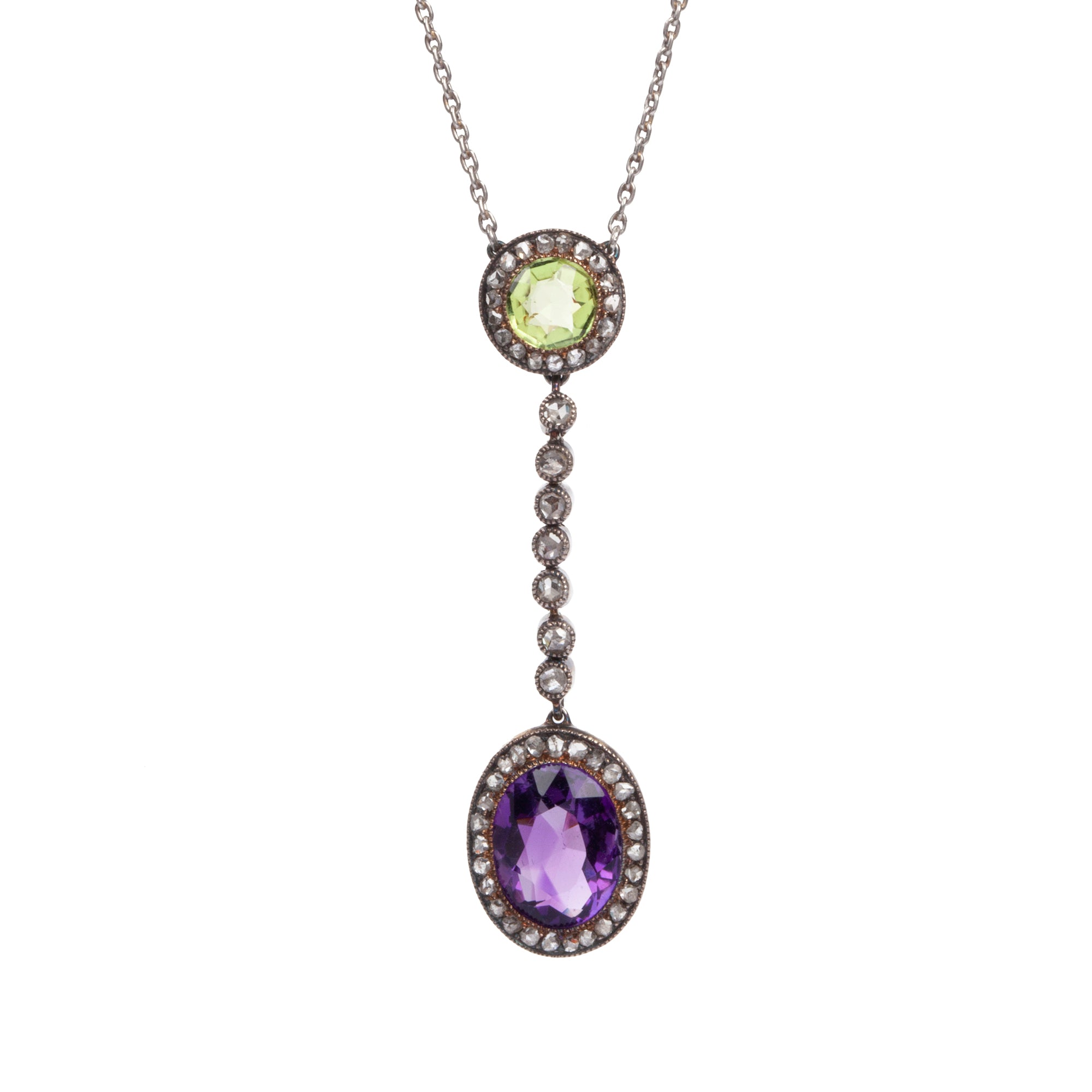 Rare Suffragette Amethyst, Peridot and Diamond Pendant