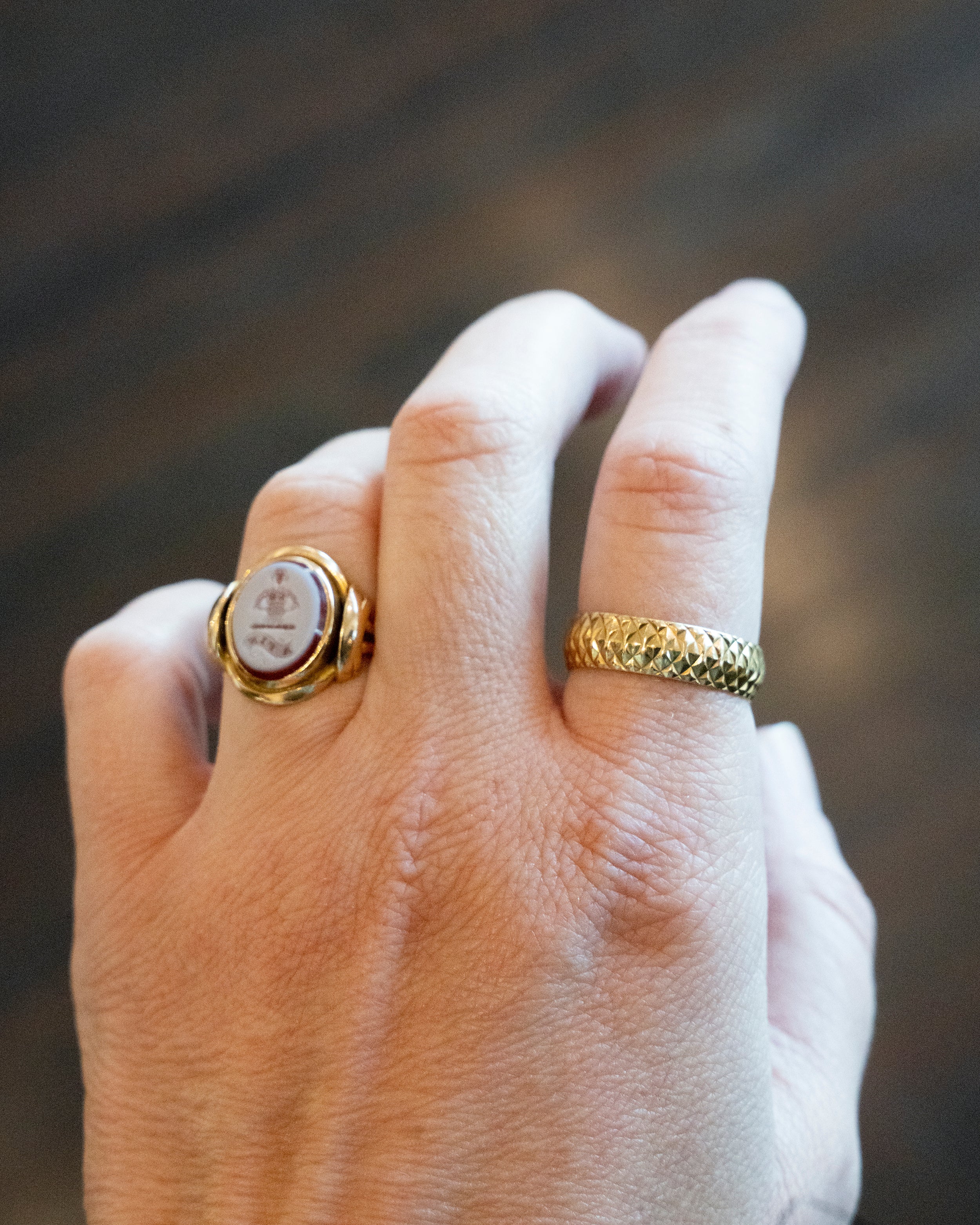 Vintage Scale Textured Gold Band
