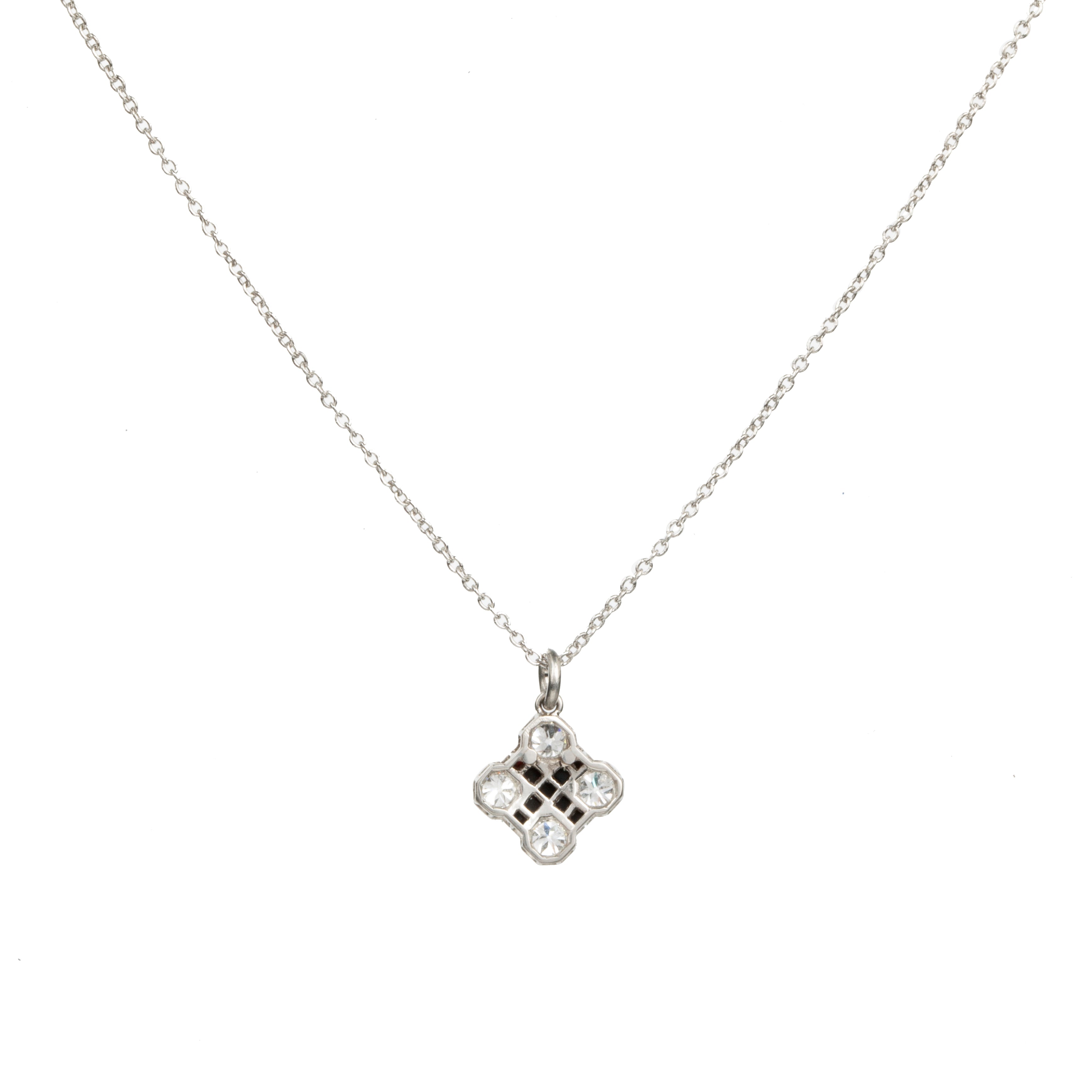 Art Deco platinum pendant with old European cut diamonds and calibre cut onyx stones. Circa 1920.