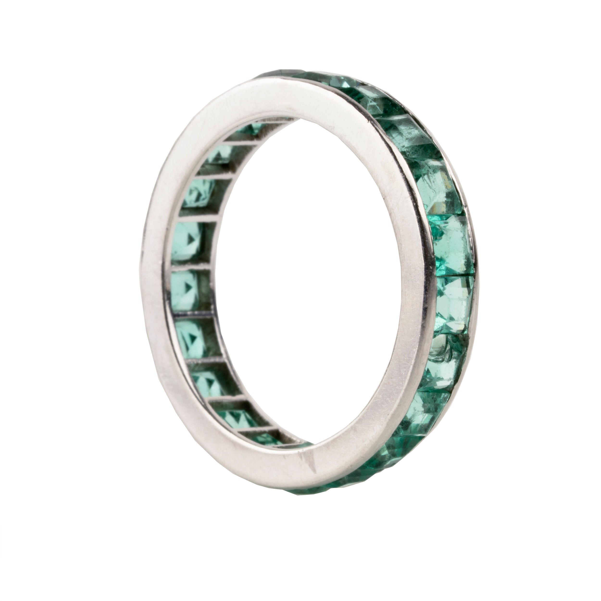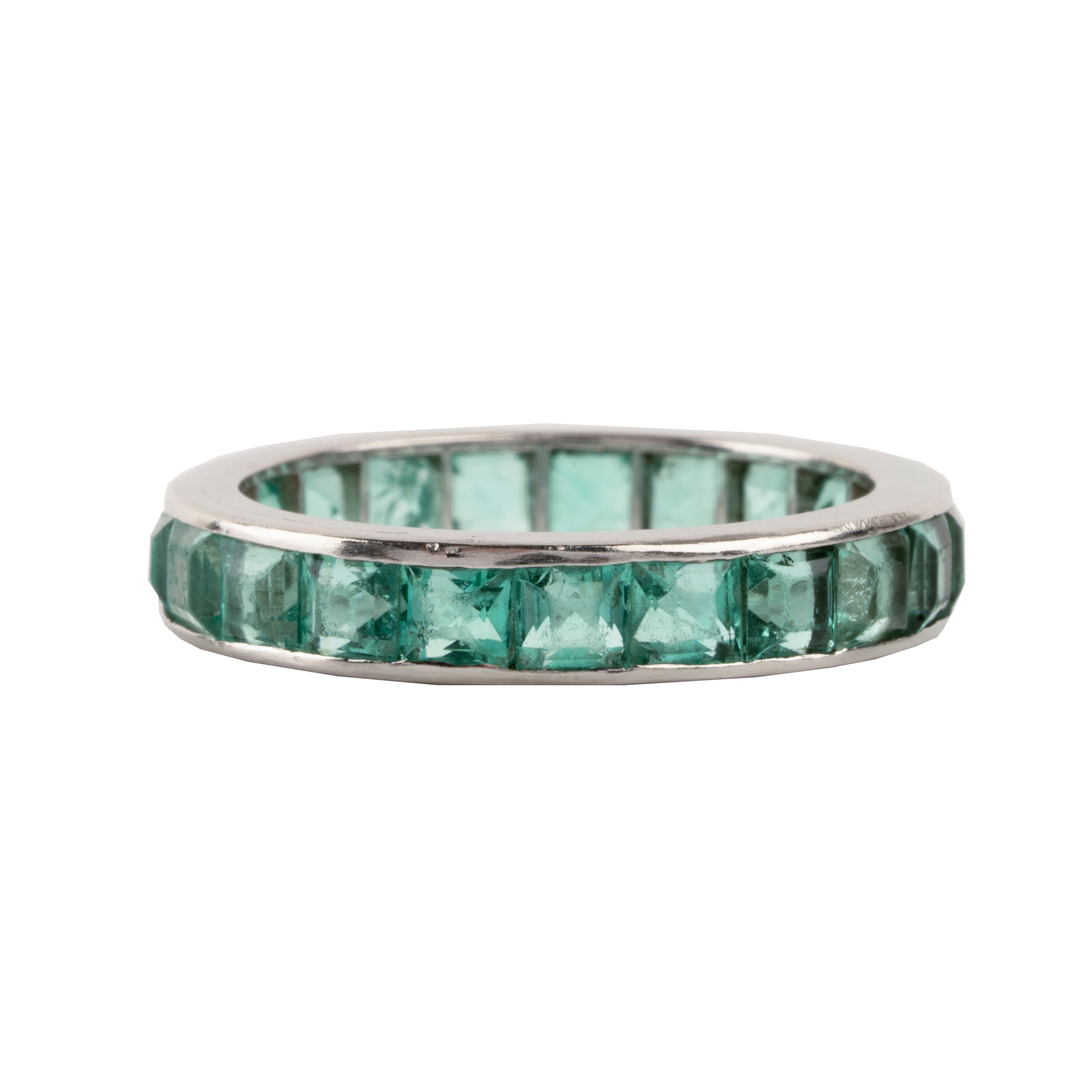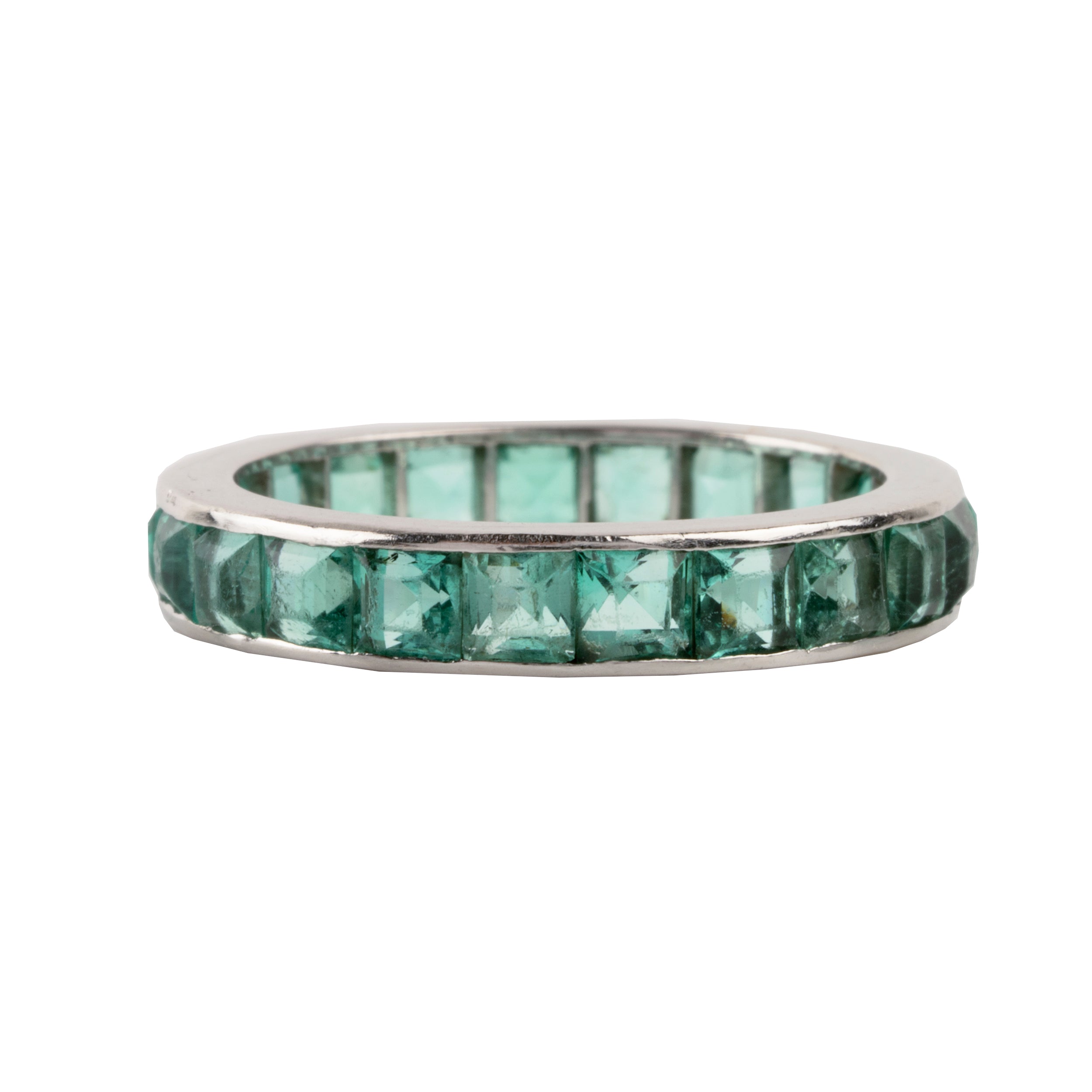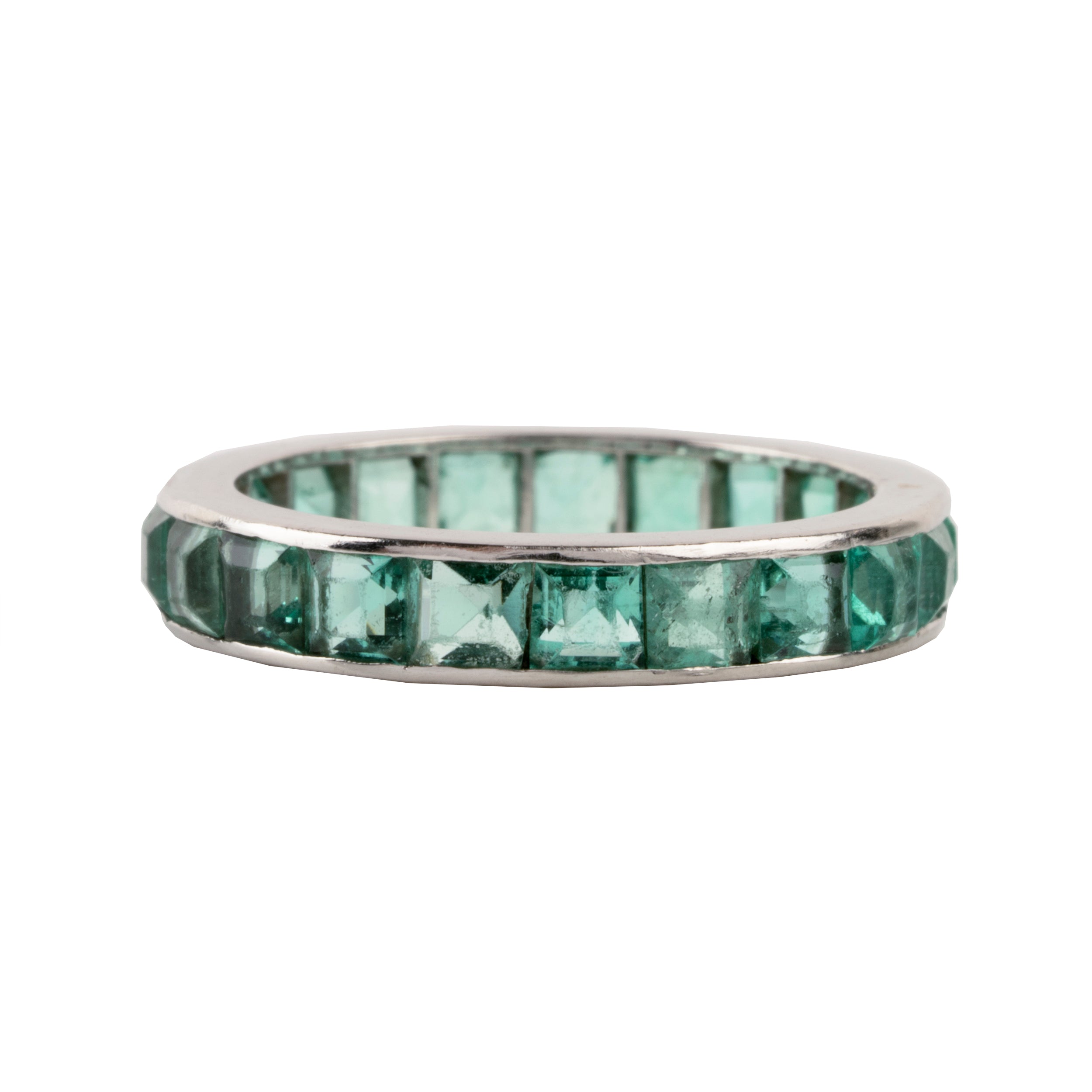 Early 20th Century French Cut Emerald Platinum Eternity Band