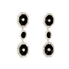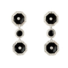 Art Deco era onyx and diamond earrings in platinum with 14k yellow gold posts. Onyx panels are surrounded by round, single-cut diamonds. These would have originally been a shirt stud set and later were converted into earrings. Circa 1910.