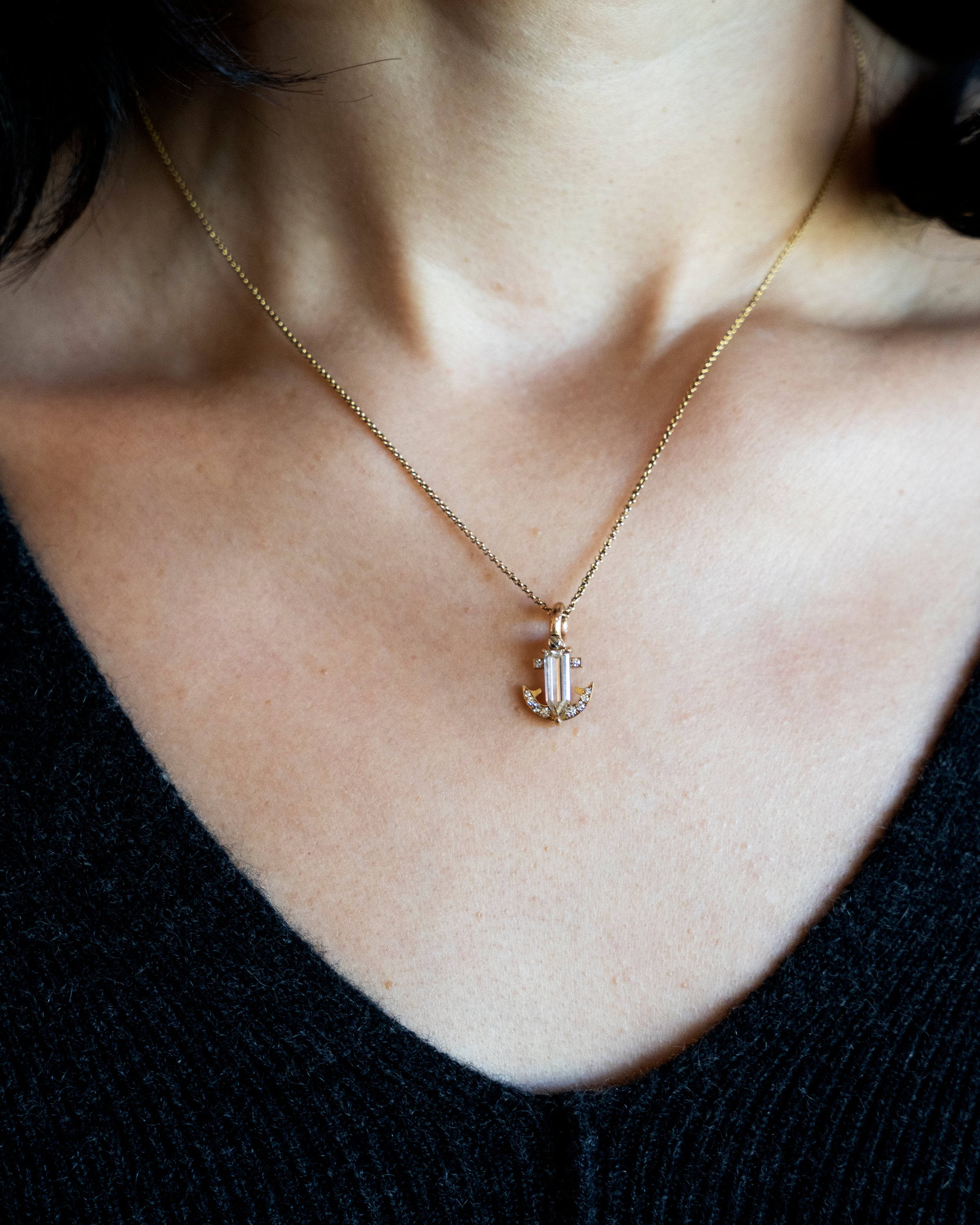 Bell & Bird Diamond Anchor Pendant Necklace