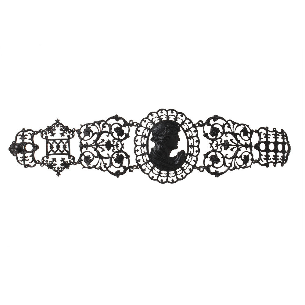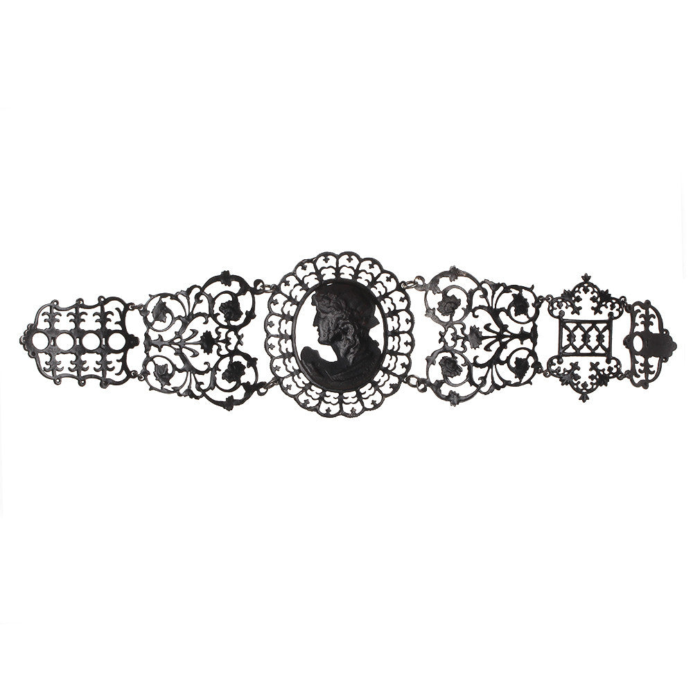 Georgian era Berlin iron bracelet. The popularity of iron and steel jewelry is considered a result of wartime political and social climates. Although its unique style had an enduring appeal and was worn as mourning jewelry well into the 19th century.