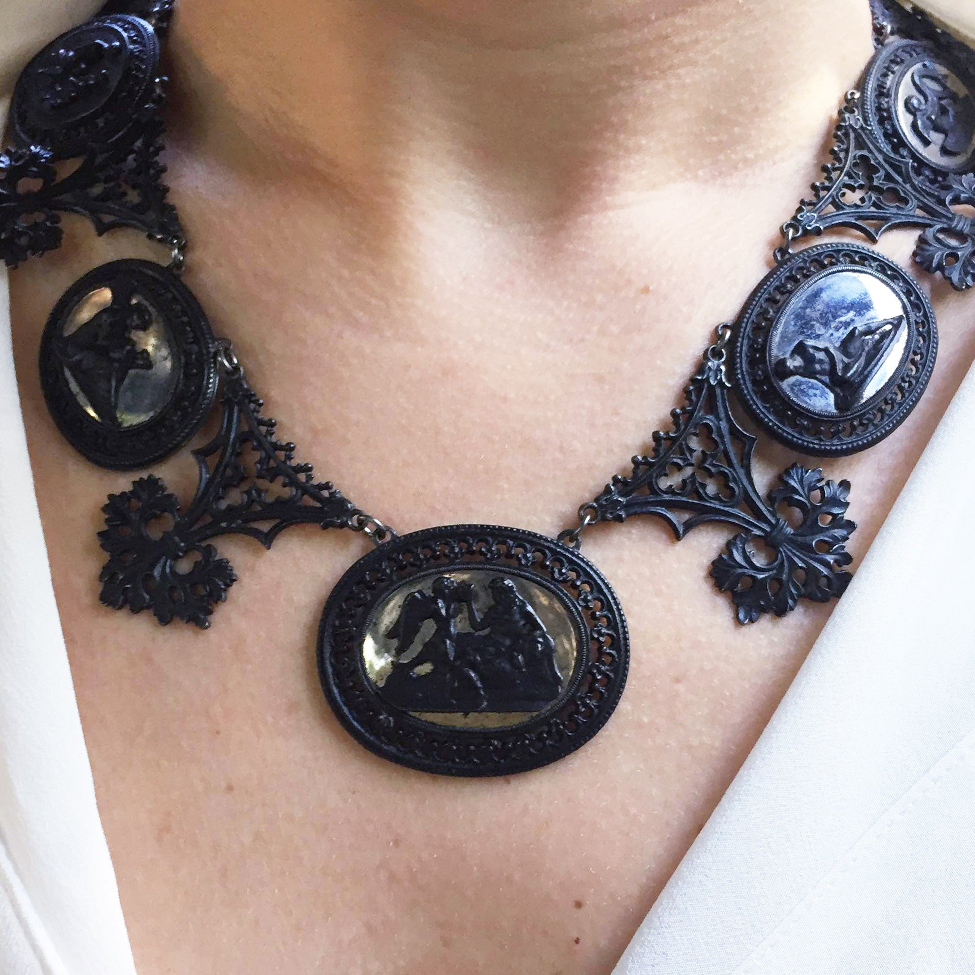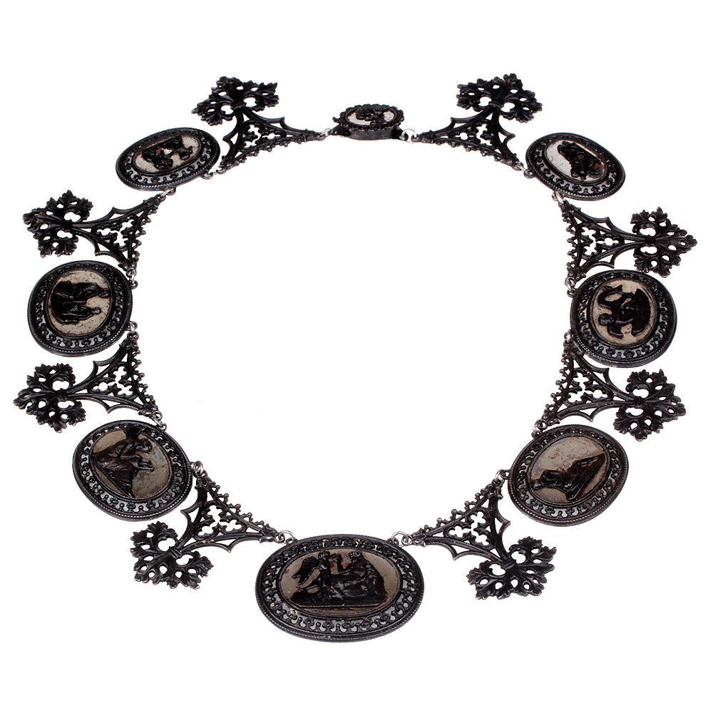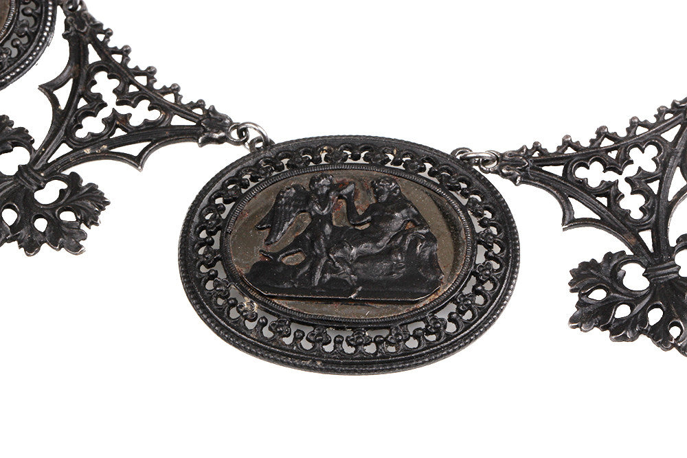 Georgian era Berlin iron necklace with mirrored plaques. Circa 1810. German in Origin.