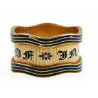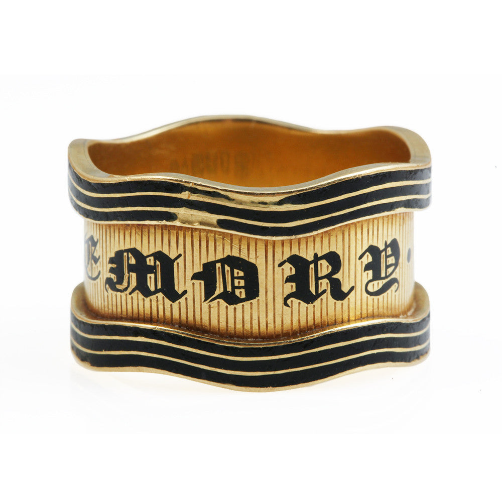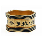 Victorian wide gold band mourning ring, " In Memory Of" in 18k Gold, English Hallmarks.
