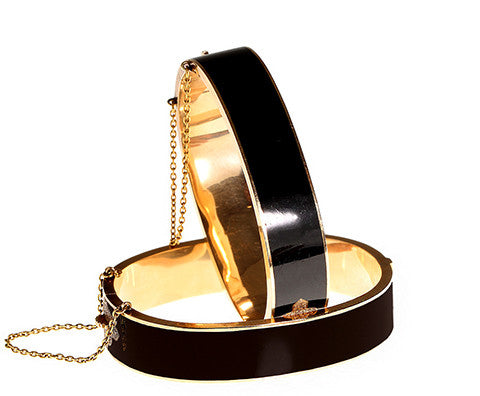 Set of Victorian Black Enamel & Gold Bangles