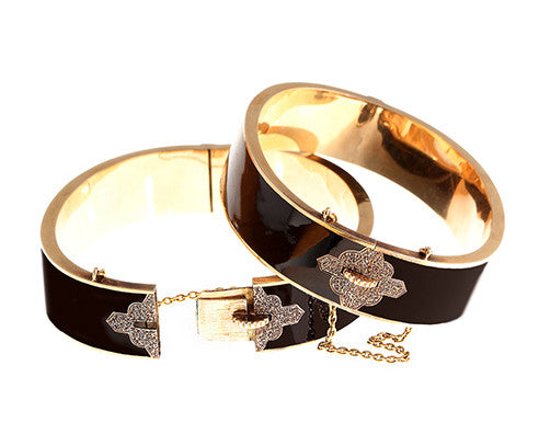 Beautifully preserved rare set of Victorian era enamel bangles. Circa 1860-1880. A pair rarely remains together for so many years as they are typically separated amongst daughters in later generations.
