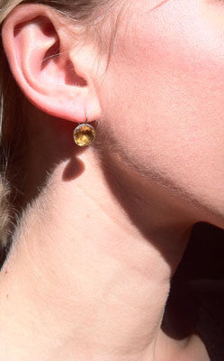 Early 19th century citrine paste earrings. Set in gilded metal with 9k gold wires. English in origin.