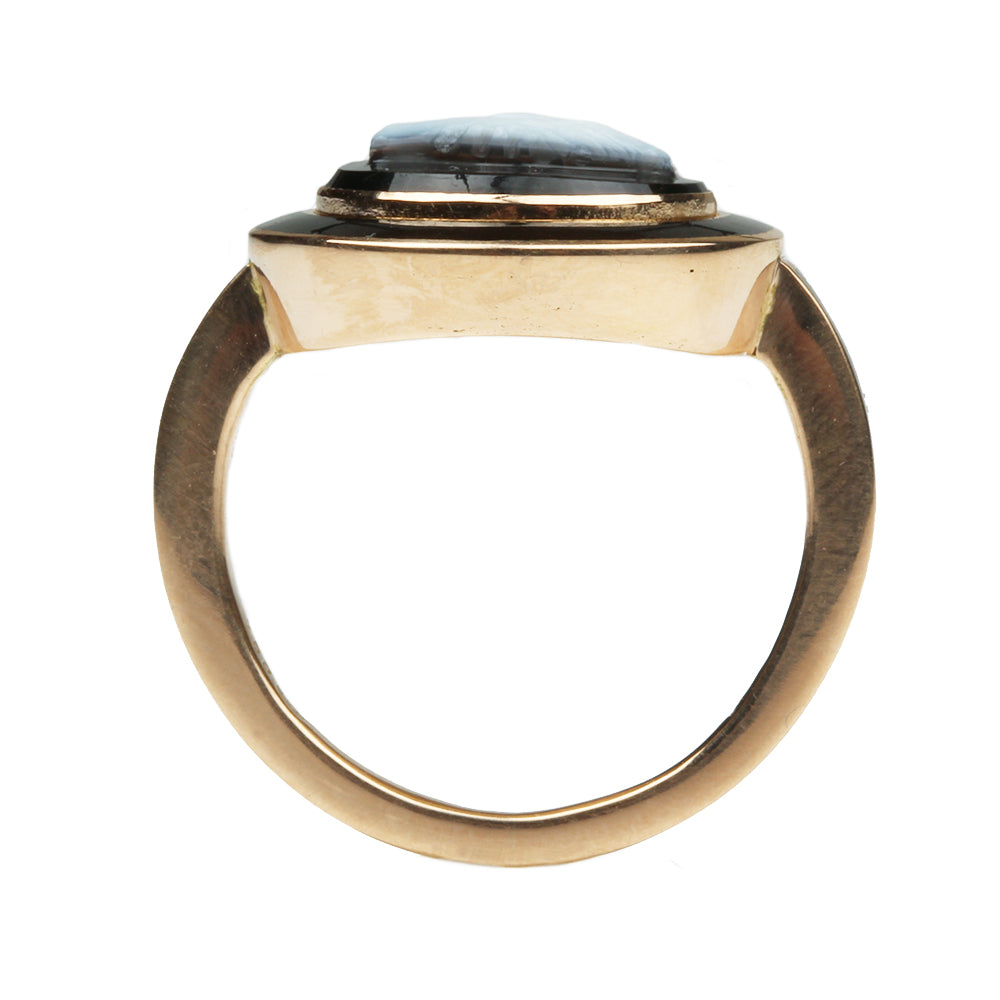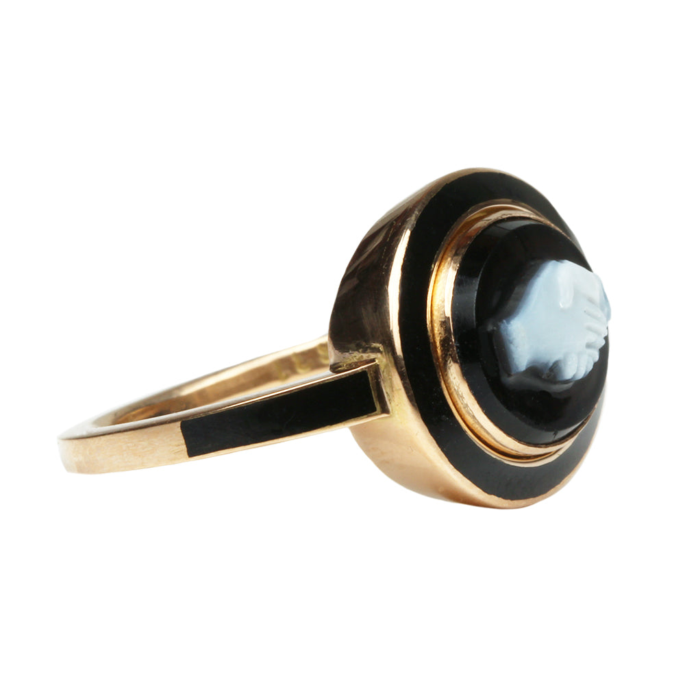 Bell & Bird Black Enamel Fede Cameo Ring