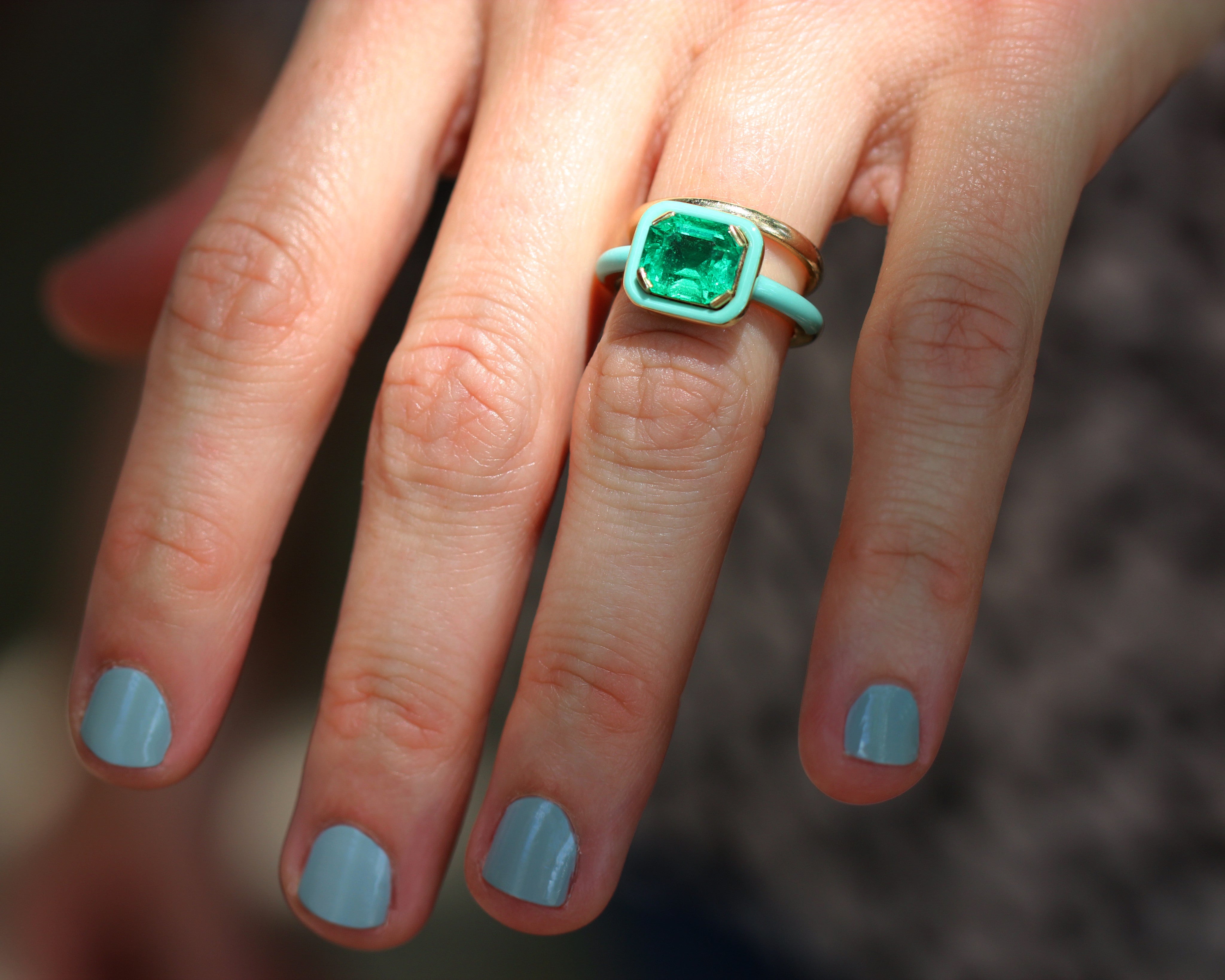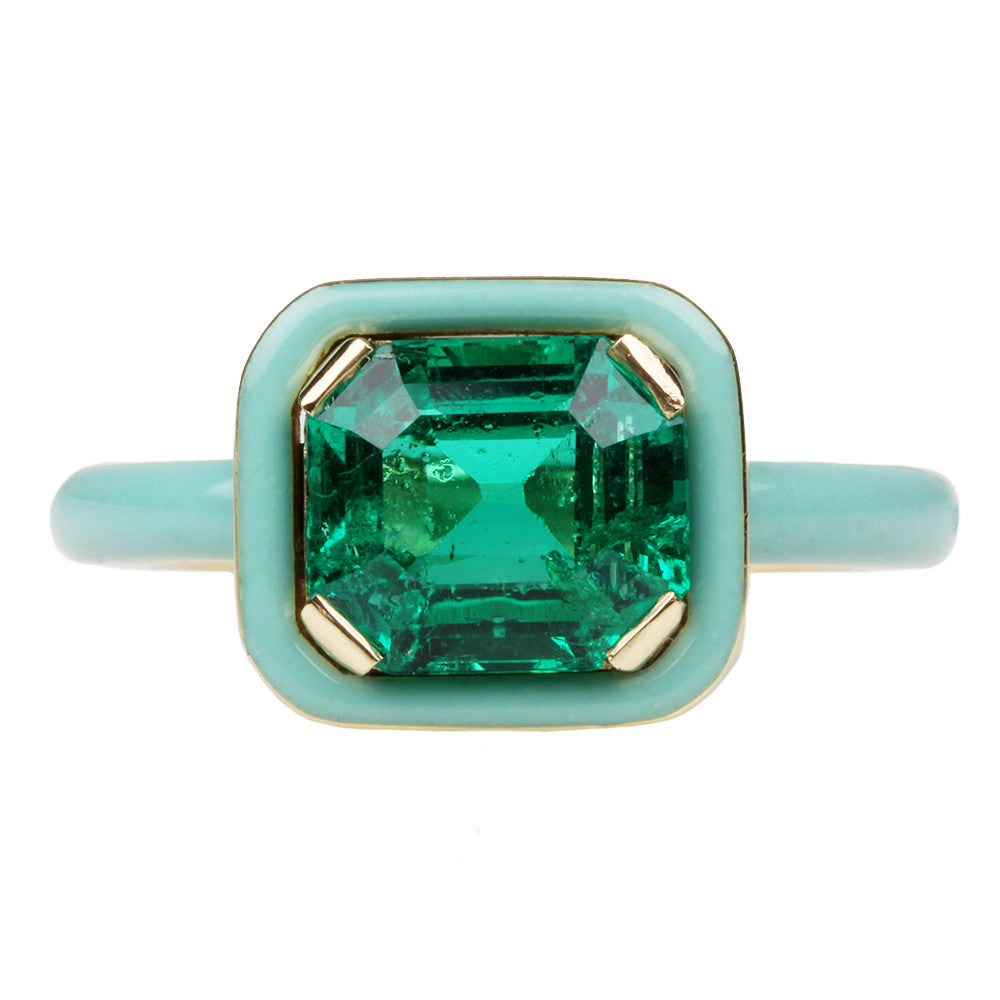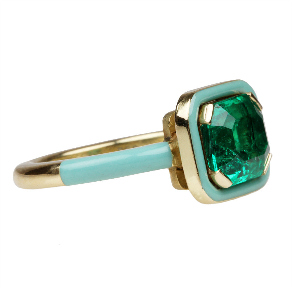 Bell & Bird Colombian Emerald and Mint Enamel Ring