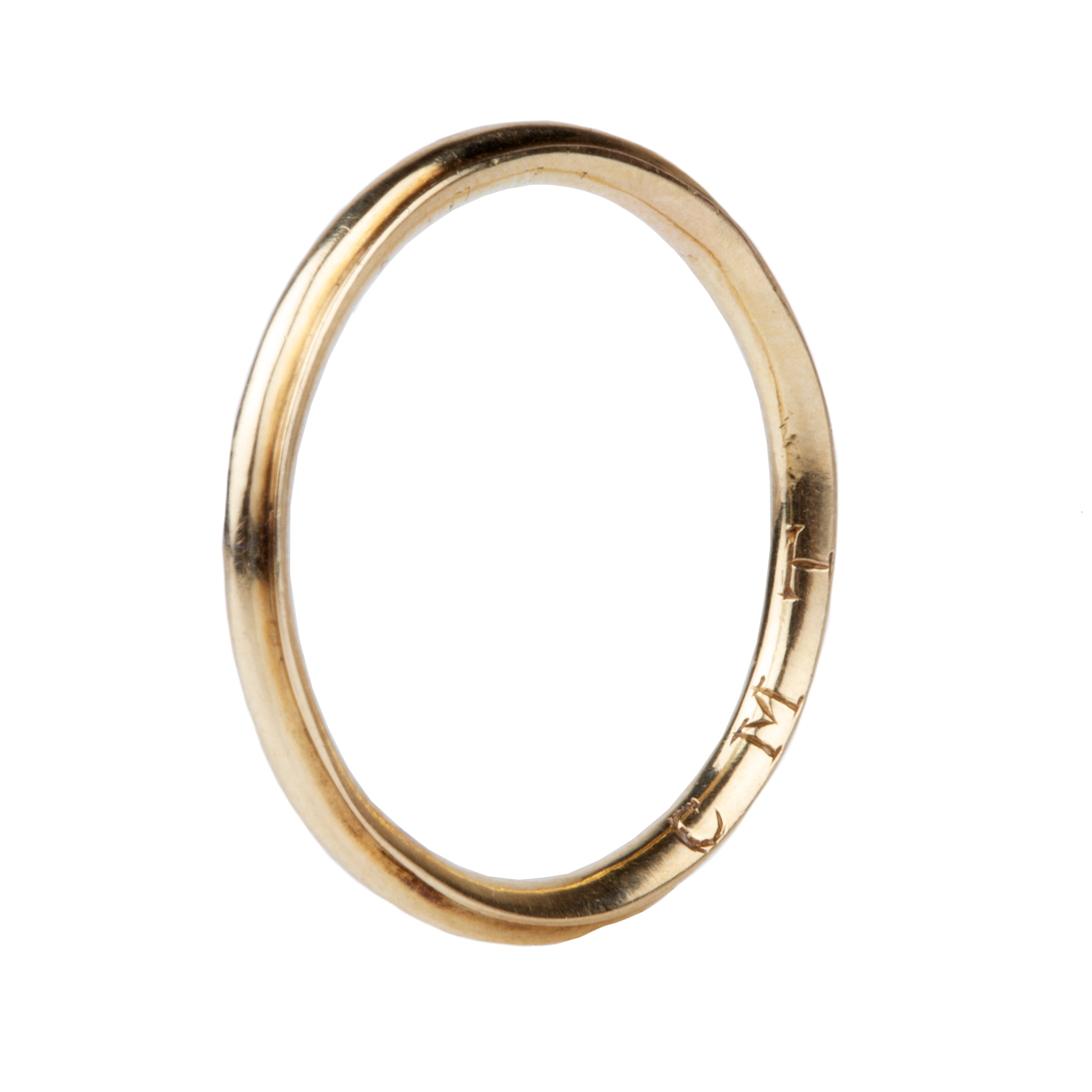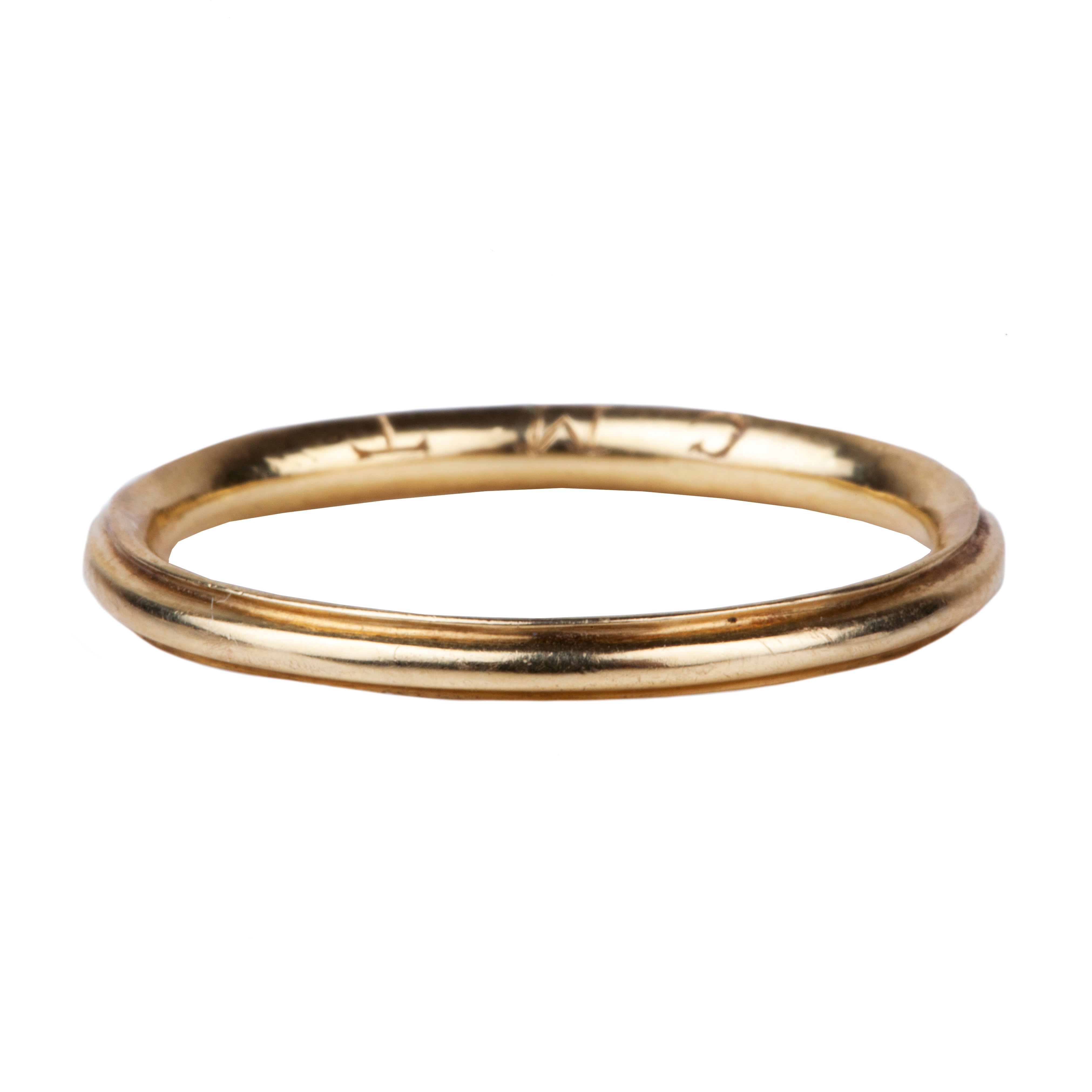 Early 19th century chased gold wedding band, in 18k gold. Rare early hallmarks for 1804. Hand engraved "CMT". English in origin.