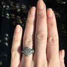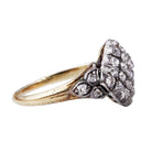 Early Victorian diamond ring. 20 Old mine cut diamonds in a diamond cluster design with 6 old mine cut diamonds on the shank. Approximately 1 carat in total diamond weight. The diamonds are set in silver on gold. English in origin, Circa 1850.