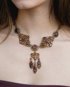 Striking early 19th-century necklace made in Europe in the Georgian era. The intricate gold cannetille work is light in weight, surrounding flat-cut garnets in 18k gold. French import marks. Circa 1820.