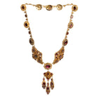 Striking early 19th-century necklace made in Europe in the Georgian era. The intricate gold cannetille work is light in weight, surrounding flat-cut garnets in 18k gold. French import marks. Circa 1820.