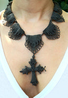 It is said pieces were made in Gleiwitz, Silesia (now part of Germany and Poland) although similar work is said to have been done in France as early as 1789, spurred by the Revolution. Hook closure at back allowing length of necklace to be adjusted.
