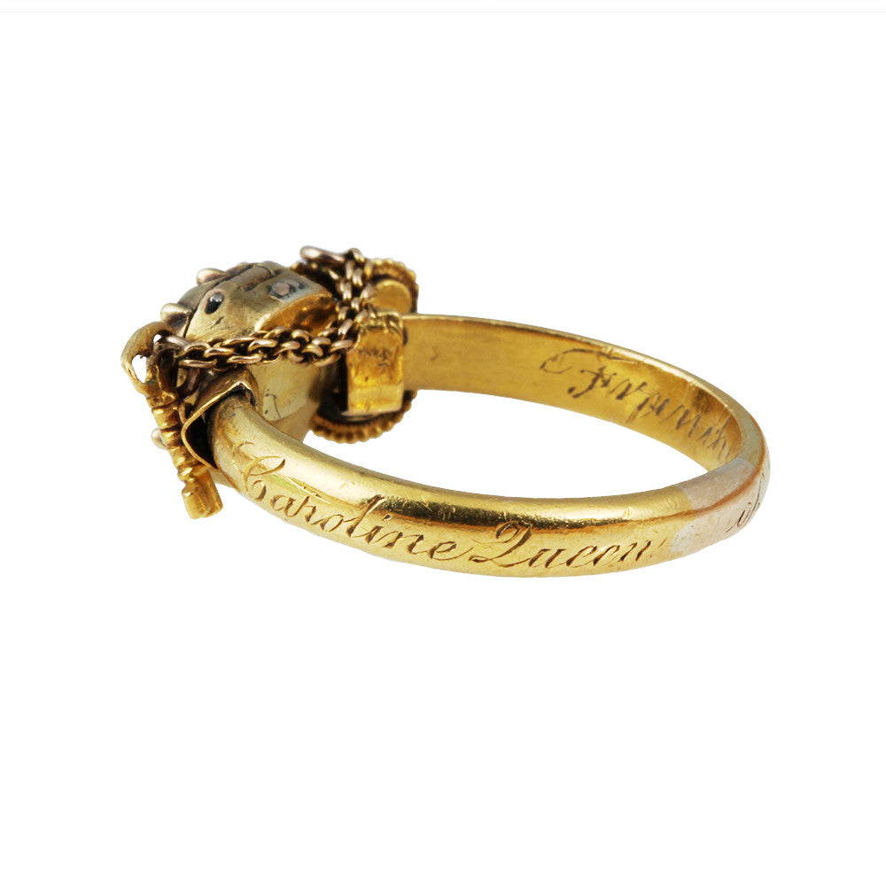 engraving. On the outside; “Caroline Queen of England 1820”. On the inside; “Franchise et