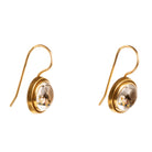 Early 20th-century Essex crystal earrings. It has a reverse carved painting of a Cornish chough bird and an admiral hood. Originally cufflinks with a later conversion, on 18k gold wires. English in origin. Circa 1900.