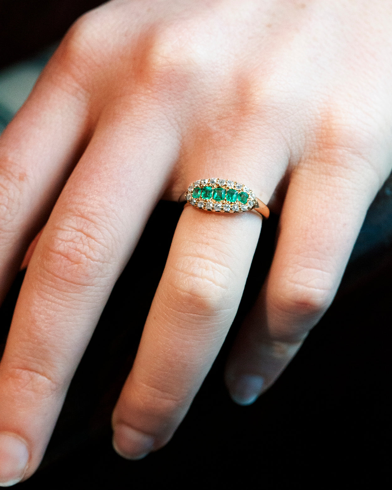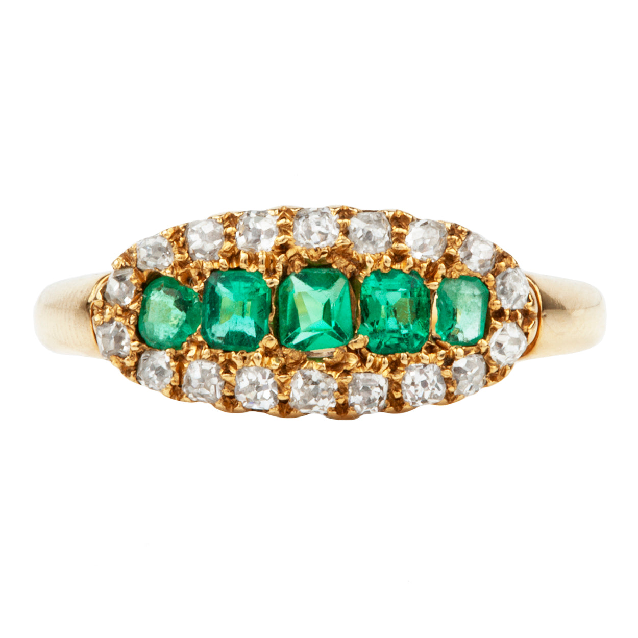 Early 20th Century Emerald and Diamond Five Stone Ring