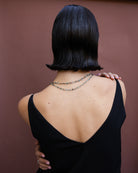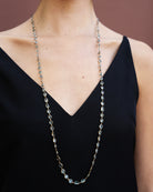 Gold lobster clasp. Measures 39 inches long. The necklace can be worn multiple ways.