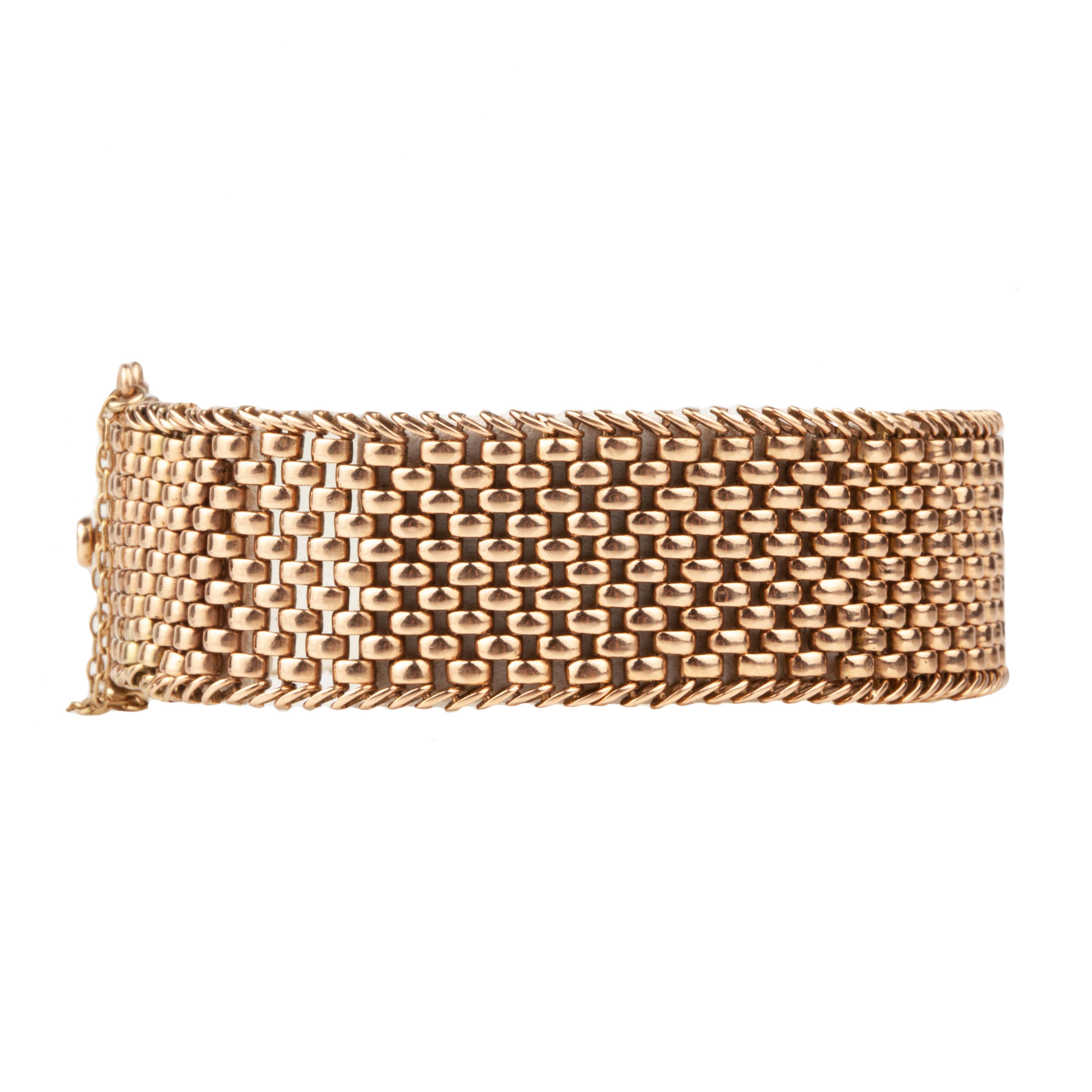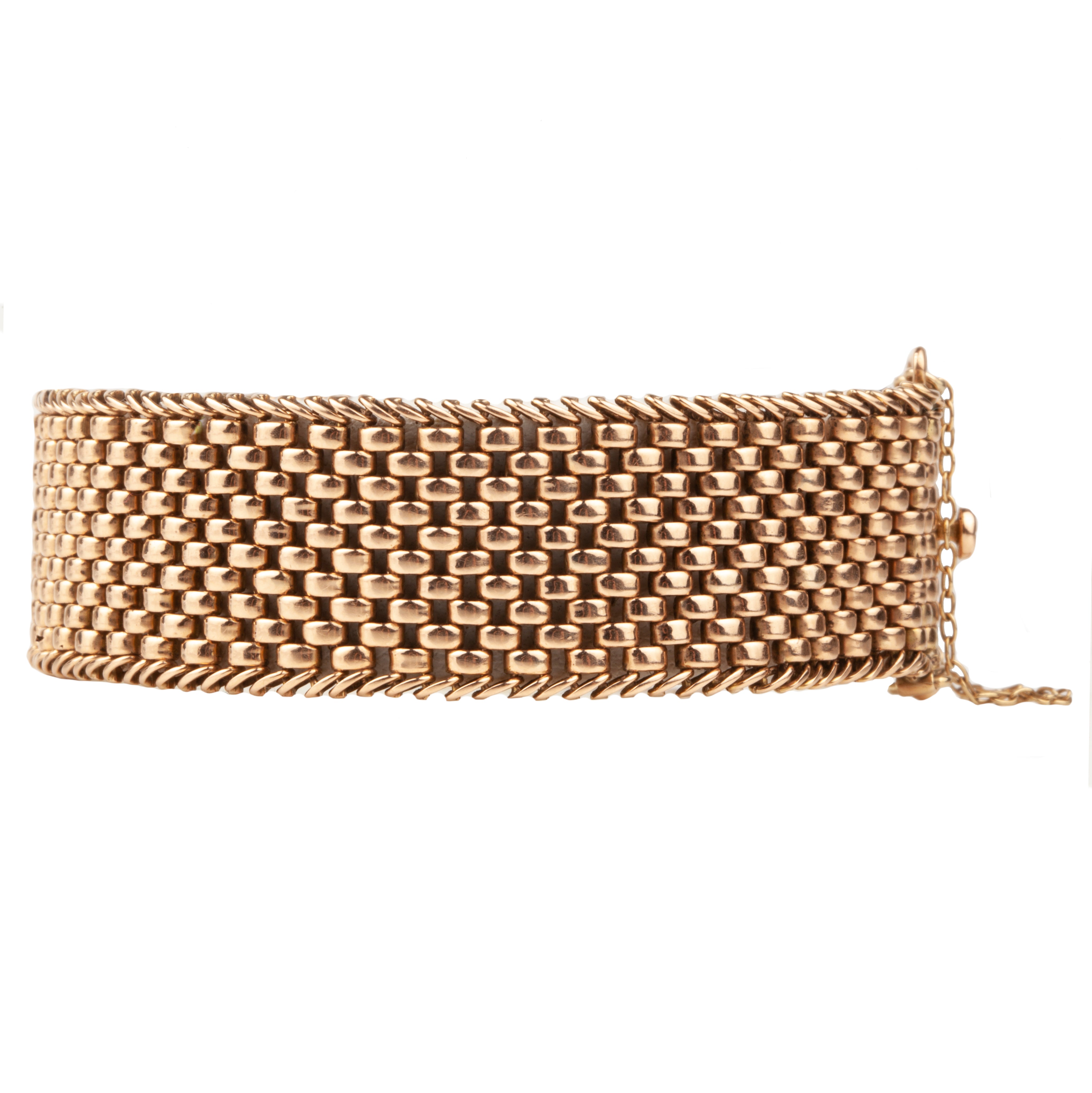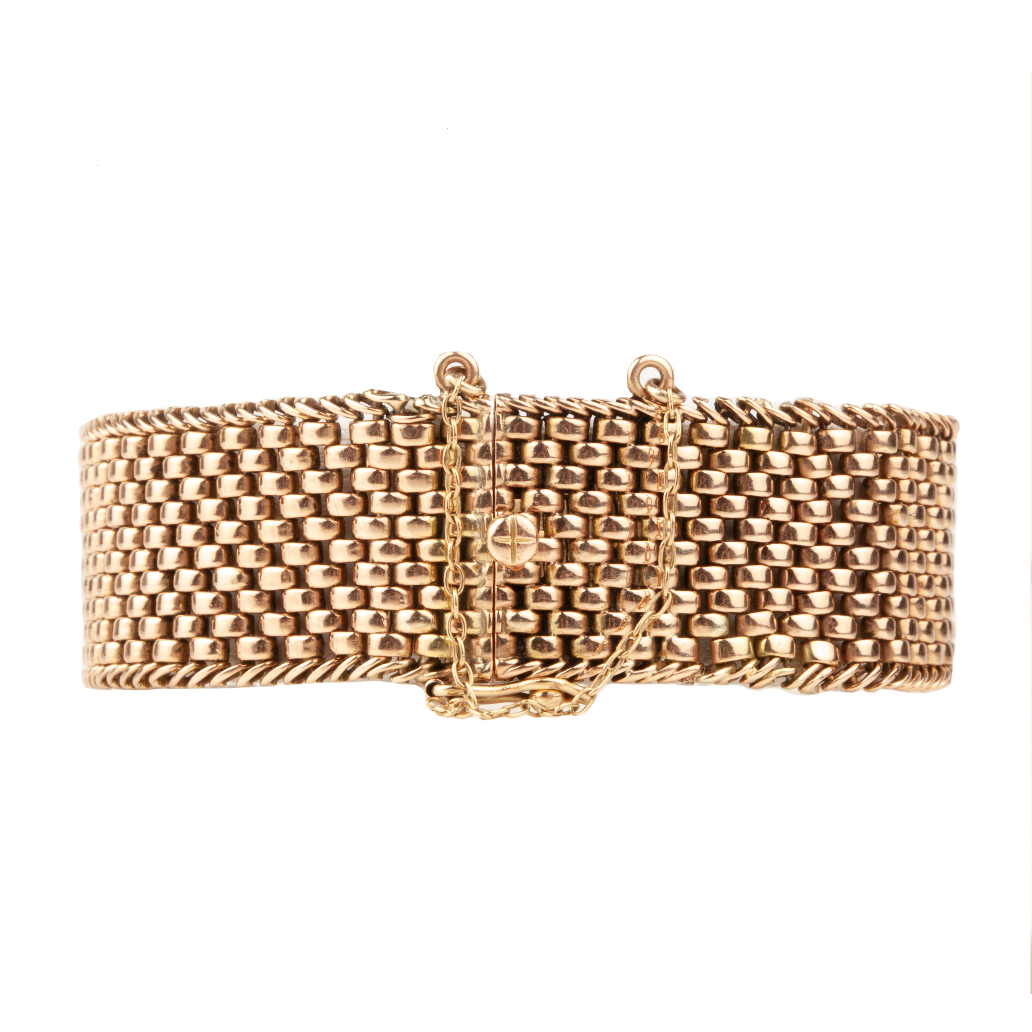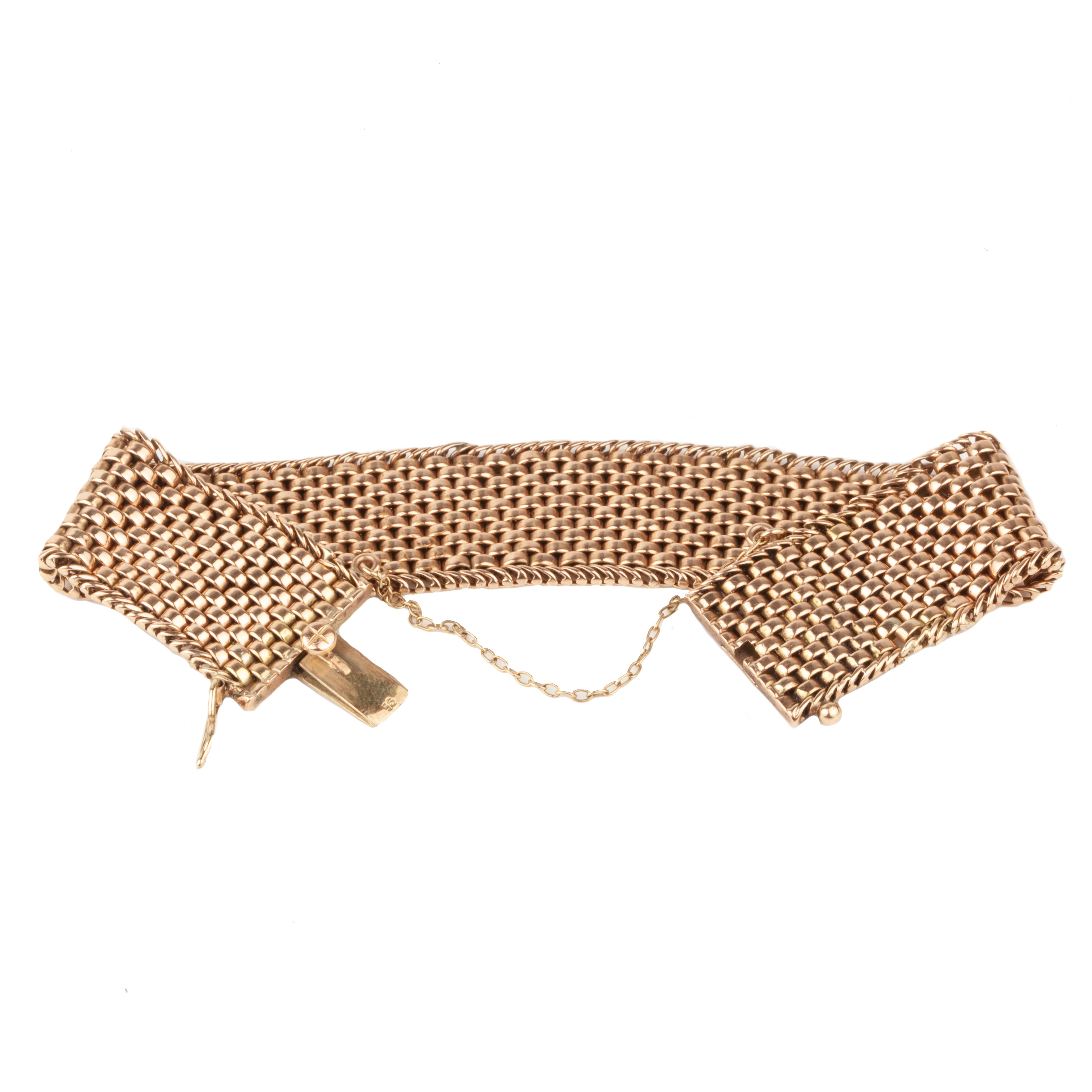 Vintage 20th century gold mesh bracelet, in 15k gold. English in origin. Very fluid and comfortable to wear.