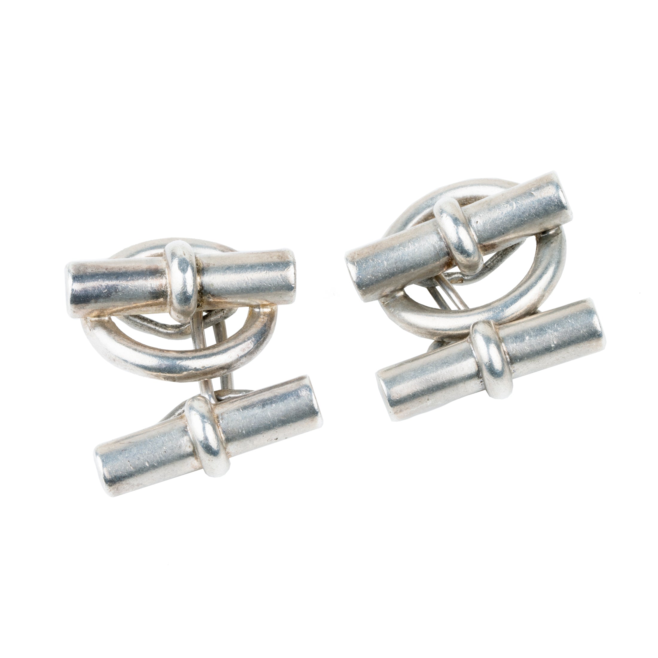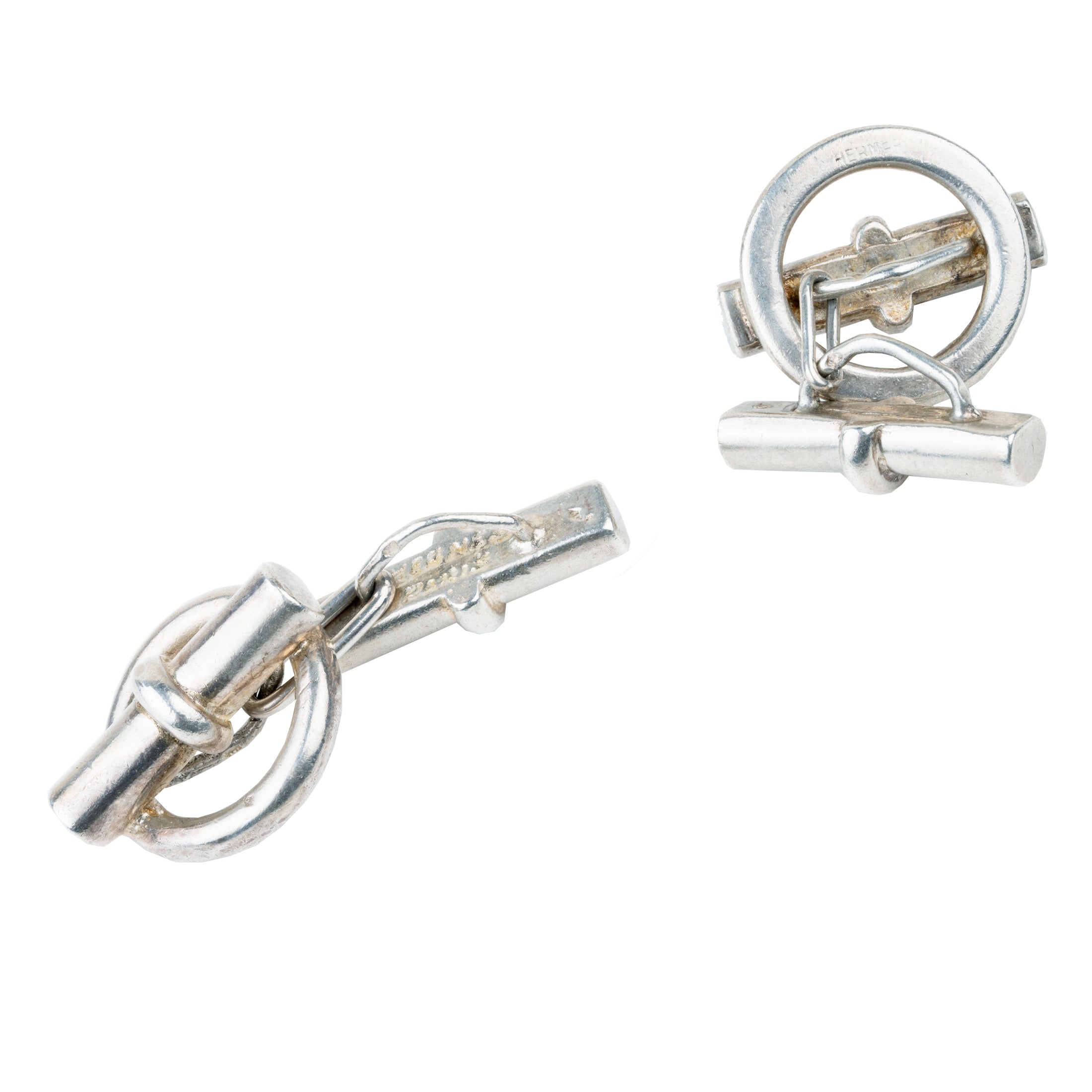 Early 20th-century Hermes silver toggle cufflinks. French hallmarks. Circa 1920.