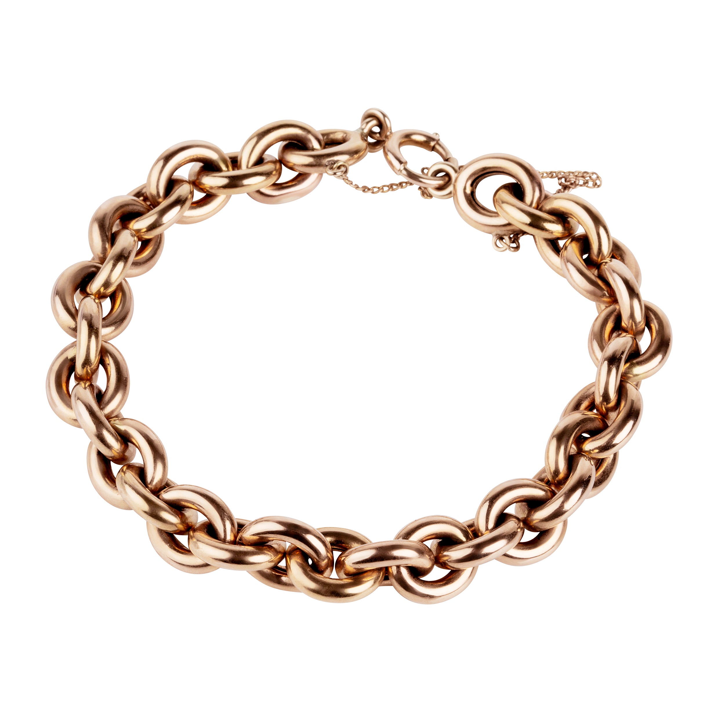 Early 20th century linked bracelet, in 15k rose gold. The oval links are hollow, making the bracelet light and easy to layer. Perfect for everyday wear. England. Circa 1900.