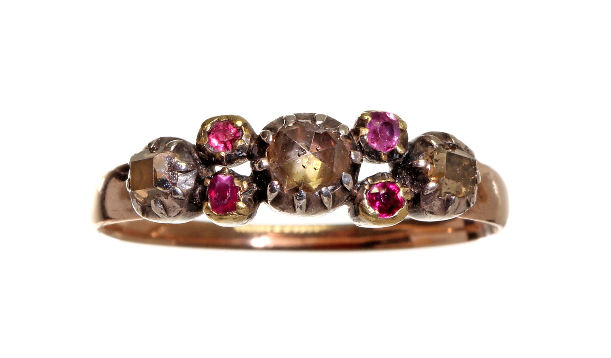 Early Georgian Era Table Cut and Rose Cut Diamond and Ruby Ring