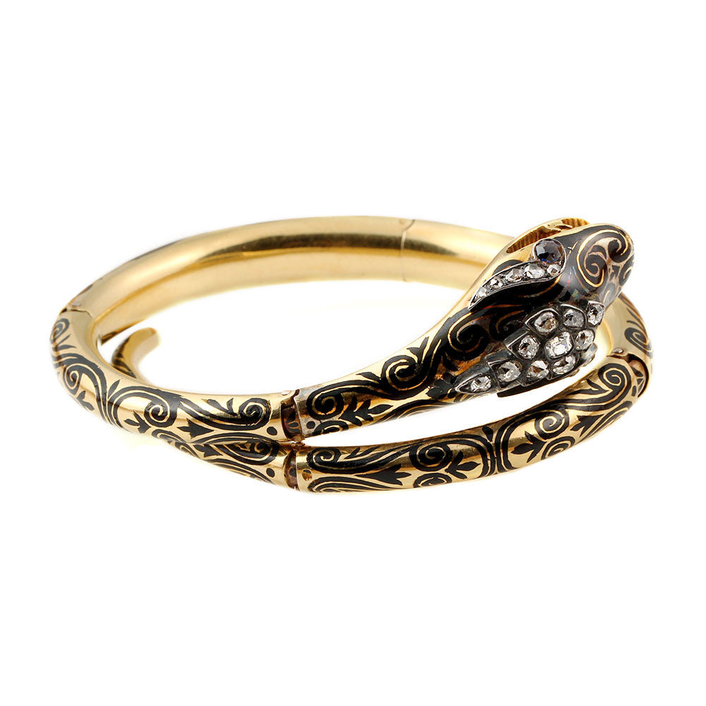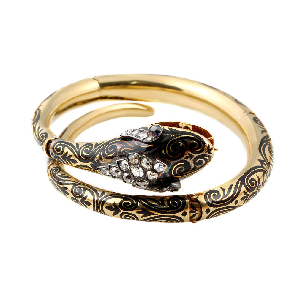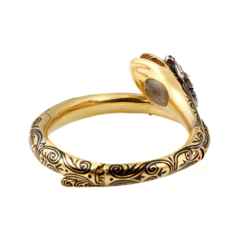 Early Victorian 18k Gold & Enamel Snake Bracelet