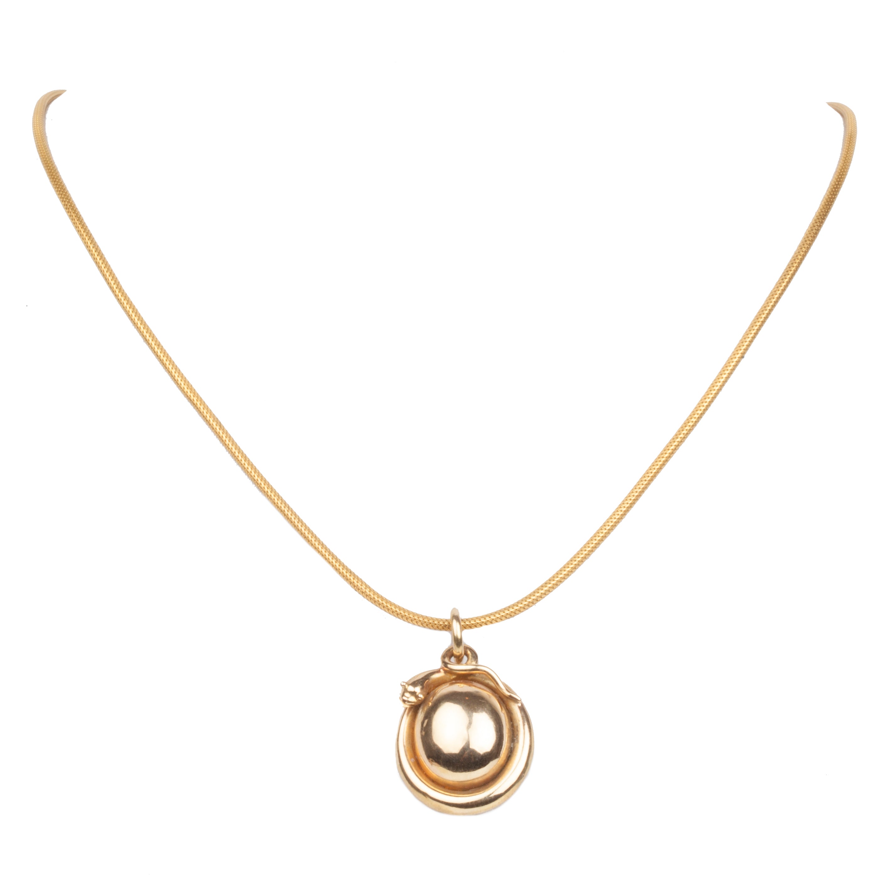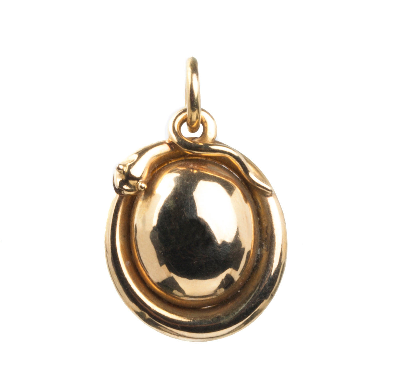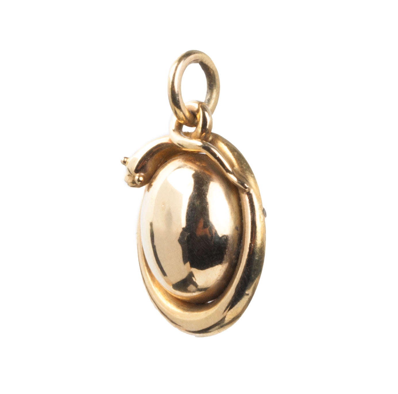 The locket hangs on an antique fine bright 18k gold snake chain, 15.50",which is sold separately. Antique chains are available in-store. Please call the shop to inquire.