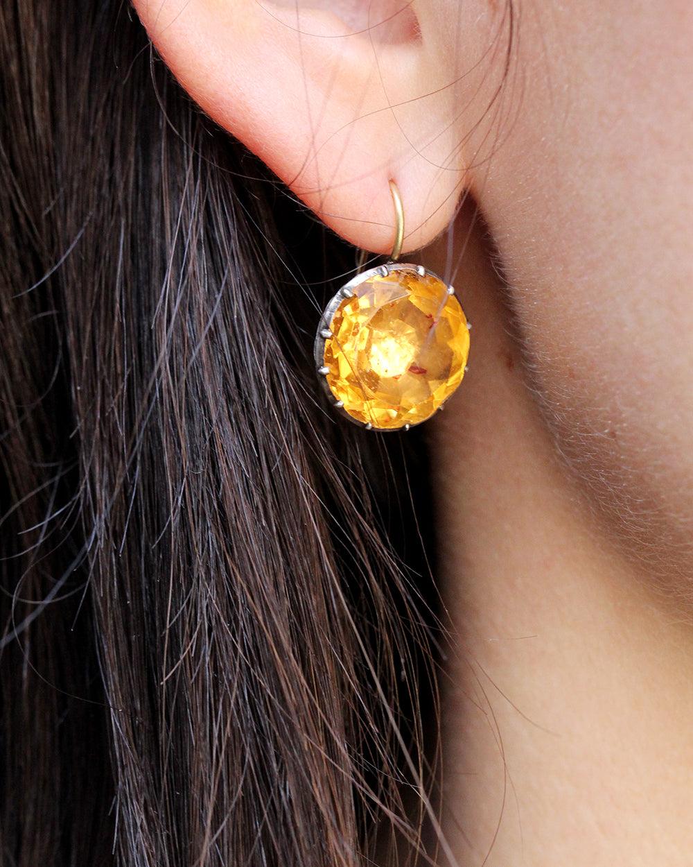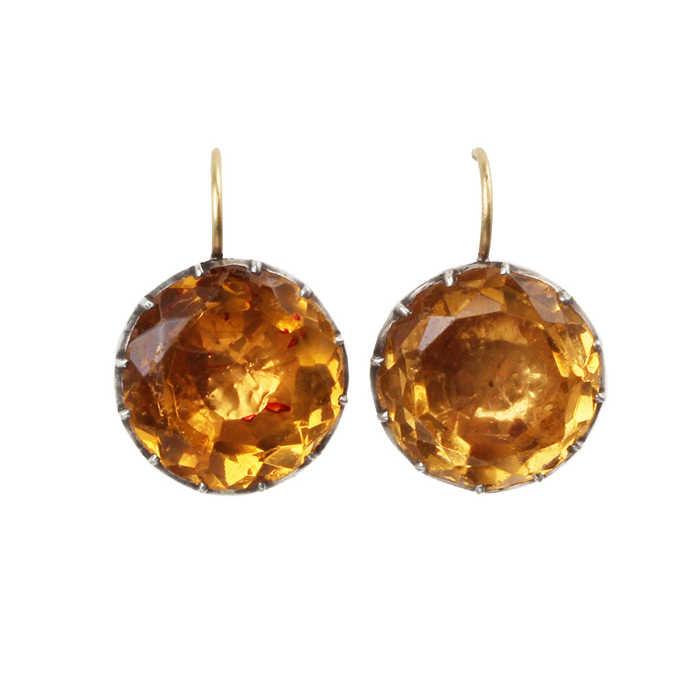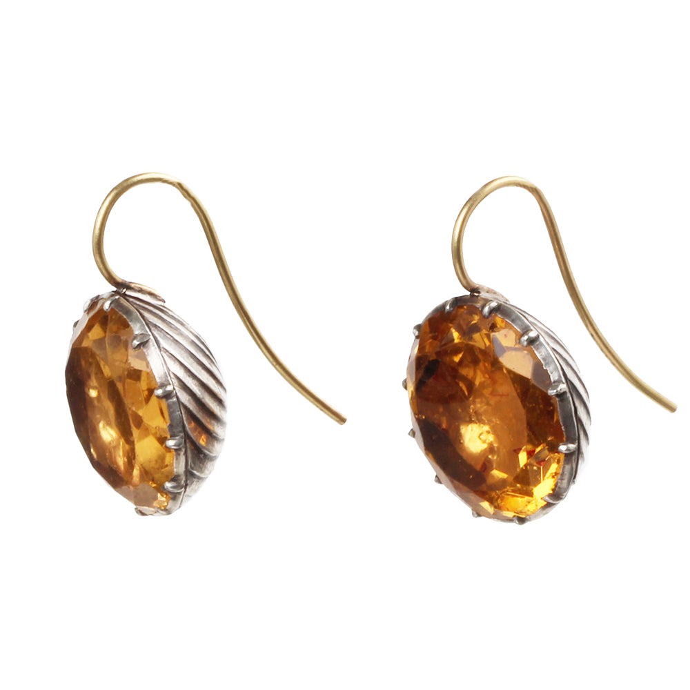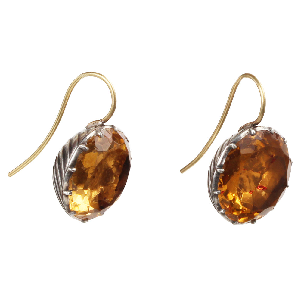 Georgian era sterling silver topaz paste buttons with twisted reeded back detail. Circa 1810. English in origin. Converted to earrings with 18k Gold Wires.