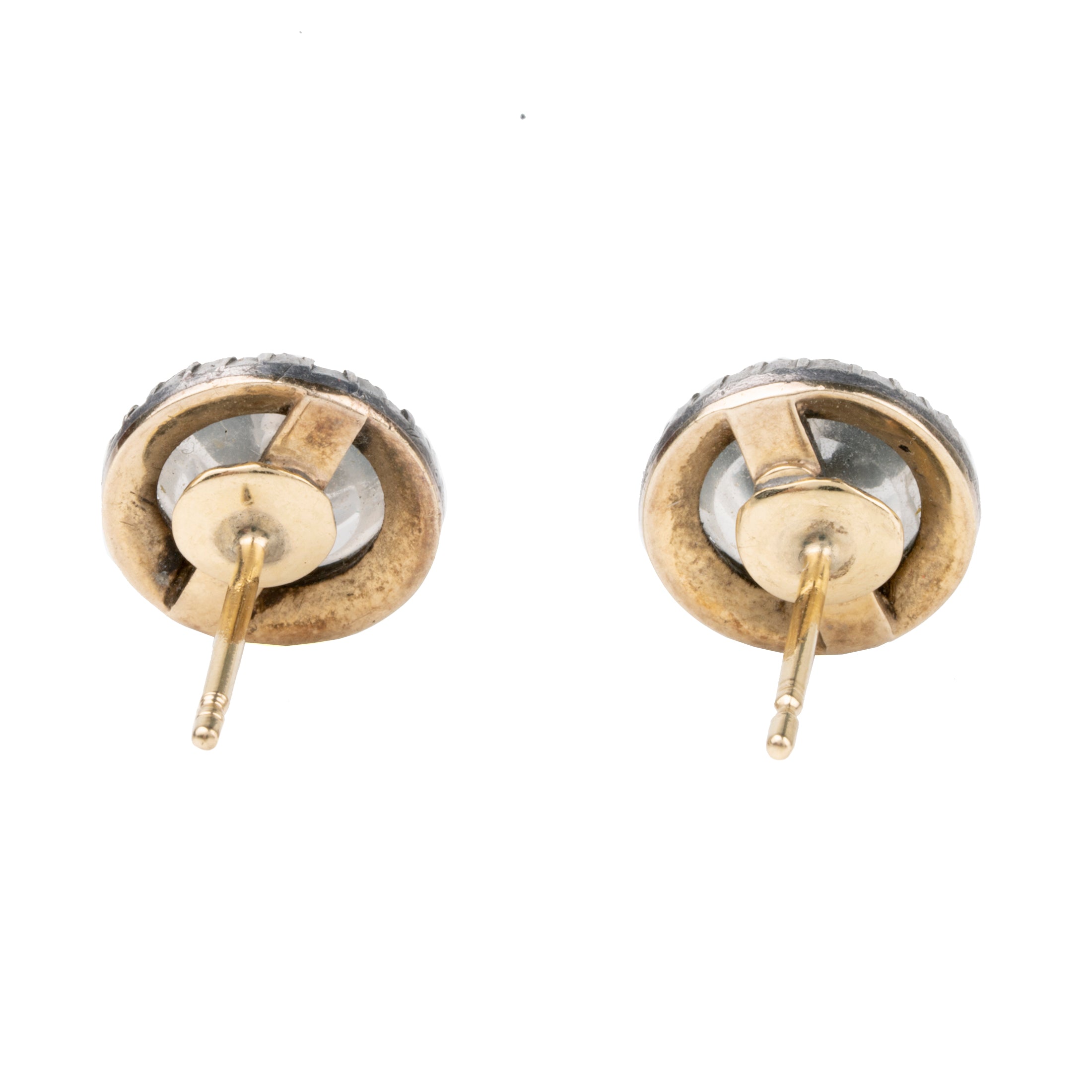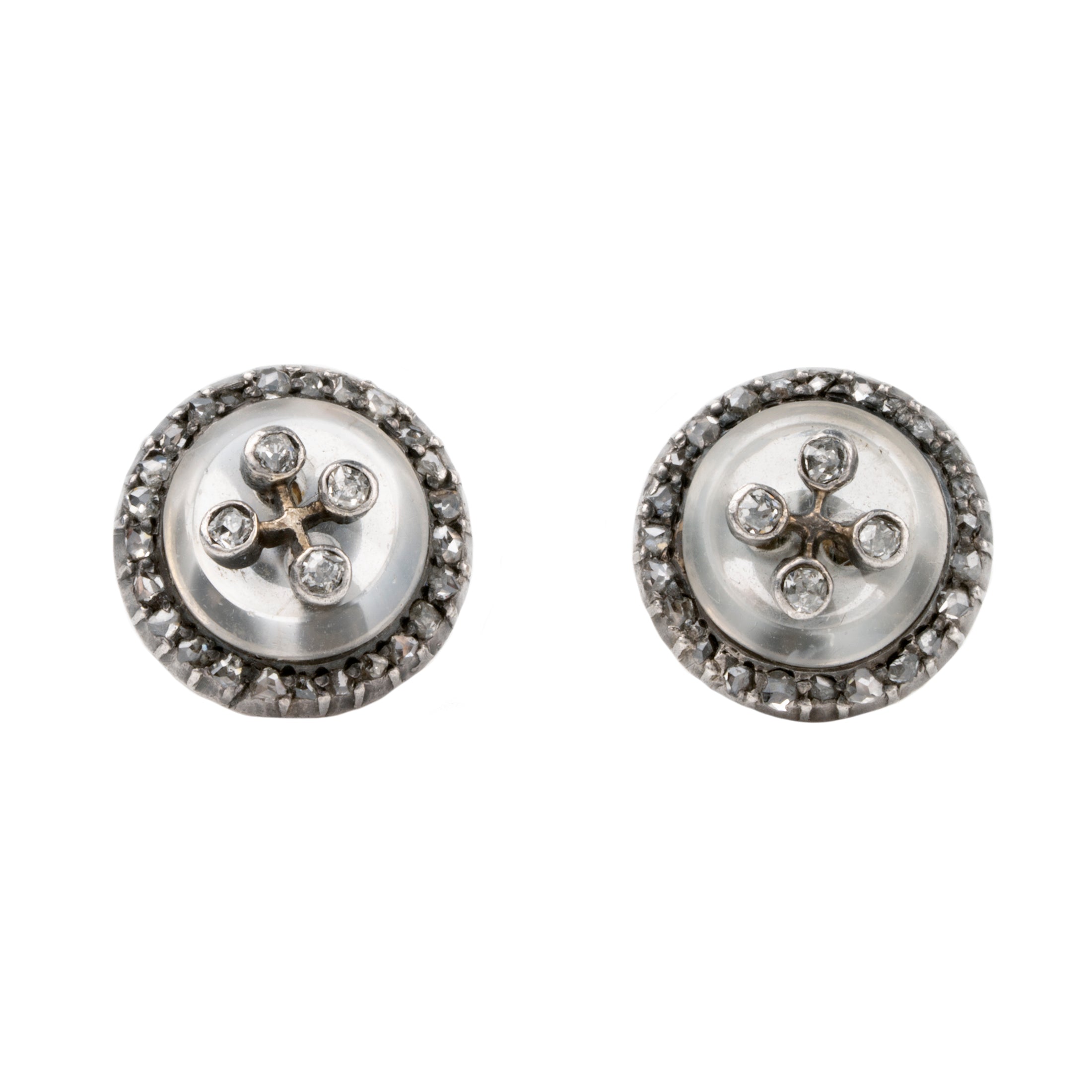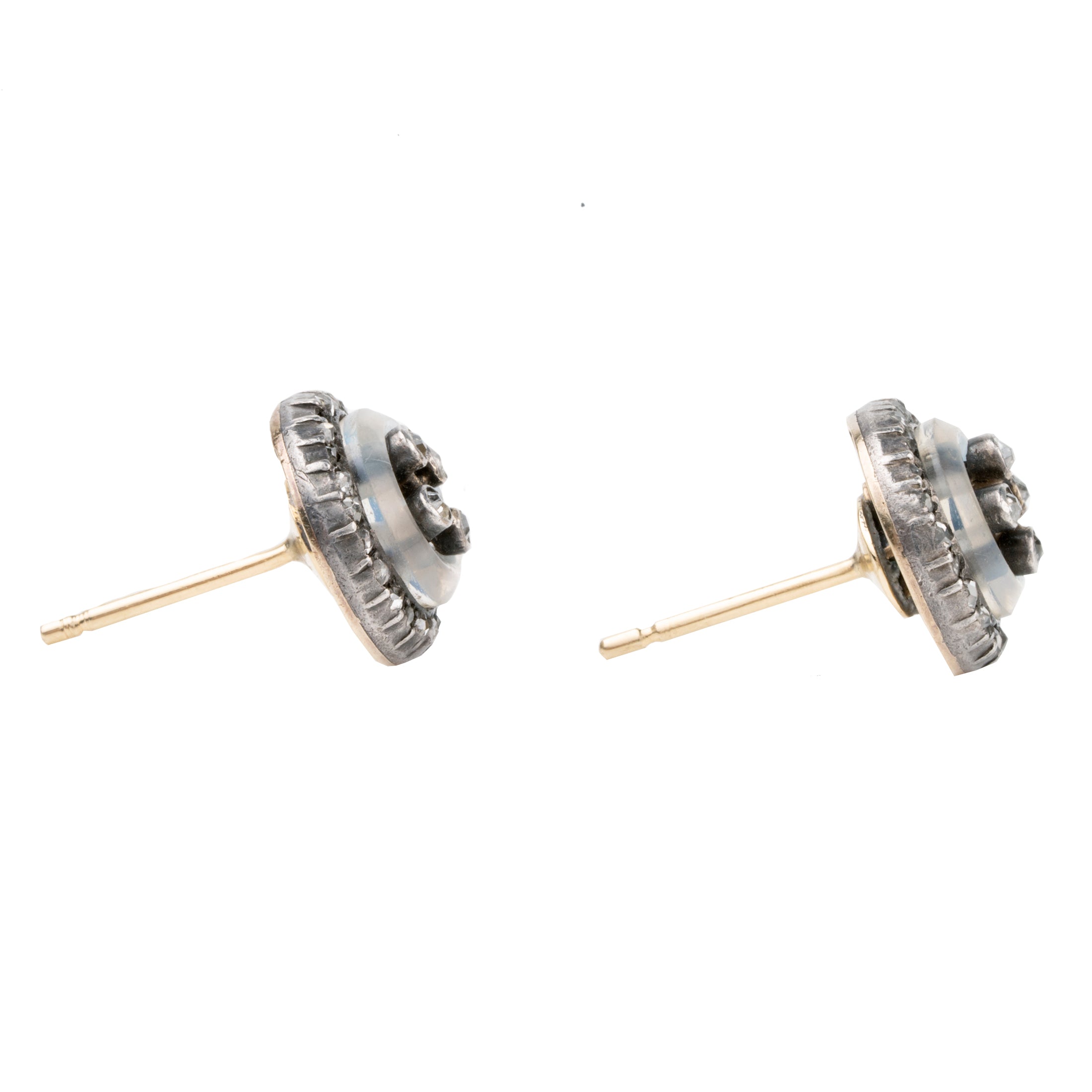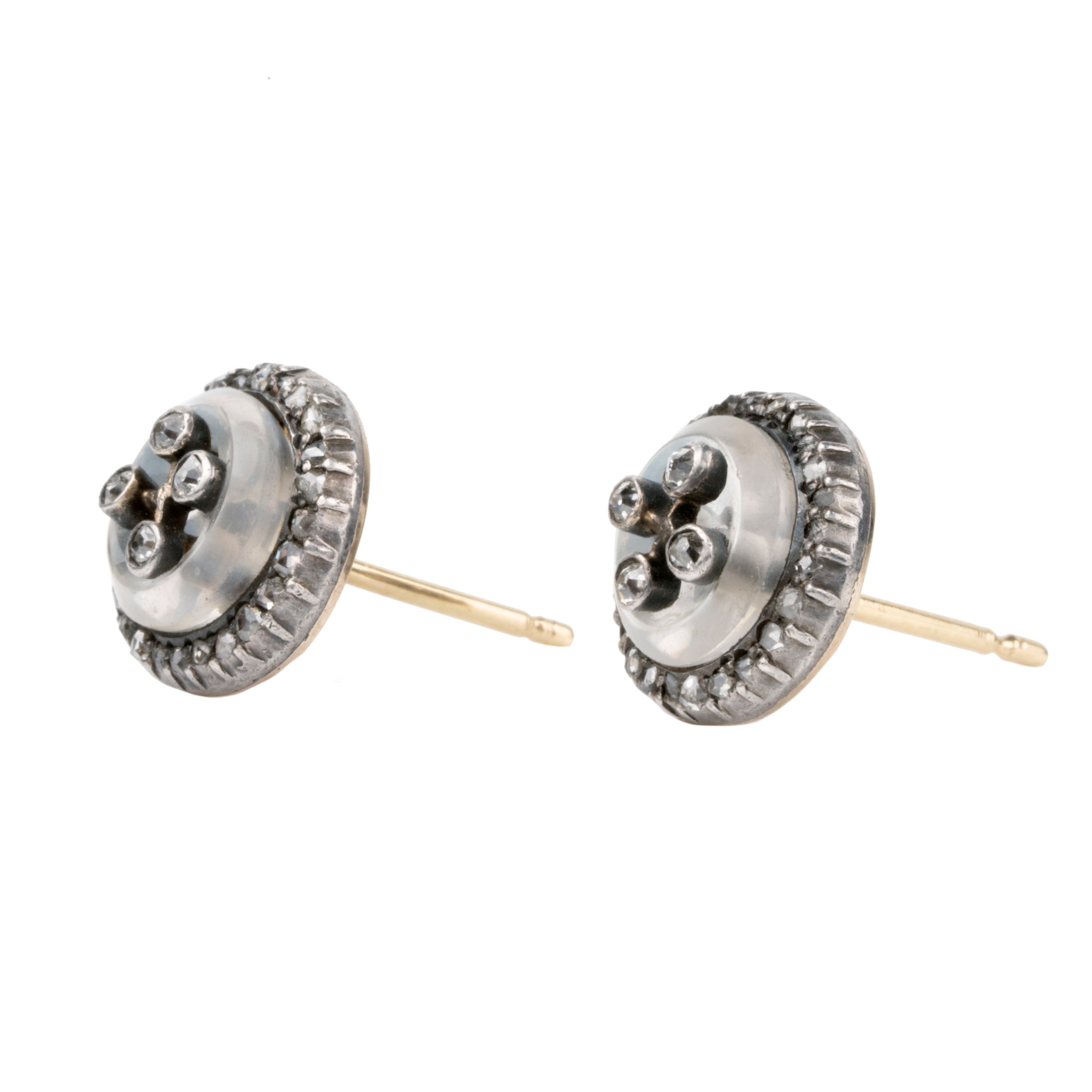 Edwardian diamond and moonstone stud earrings, in silver topped gold.