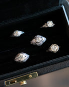 Old mine cut diamonds were cut for gas and candle light and omit a darker romantic sparkle. While the precision faceting of modern stone’s main objective is to refract as much white light as possible. A 19th century diamond was cut to preserve as much weight as possible and often follow the same shape as the rough diamond crystal as it was pulled from the ground.