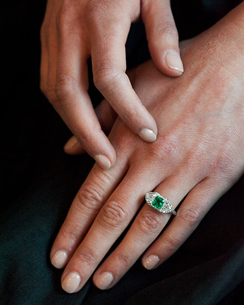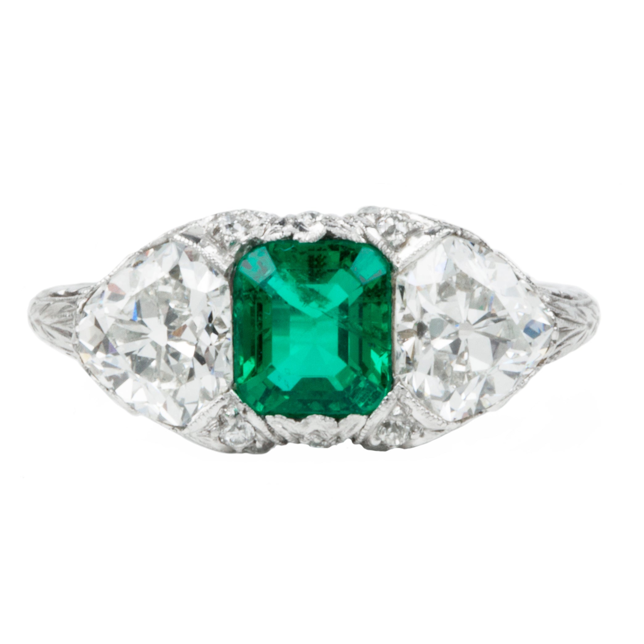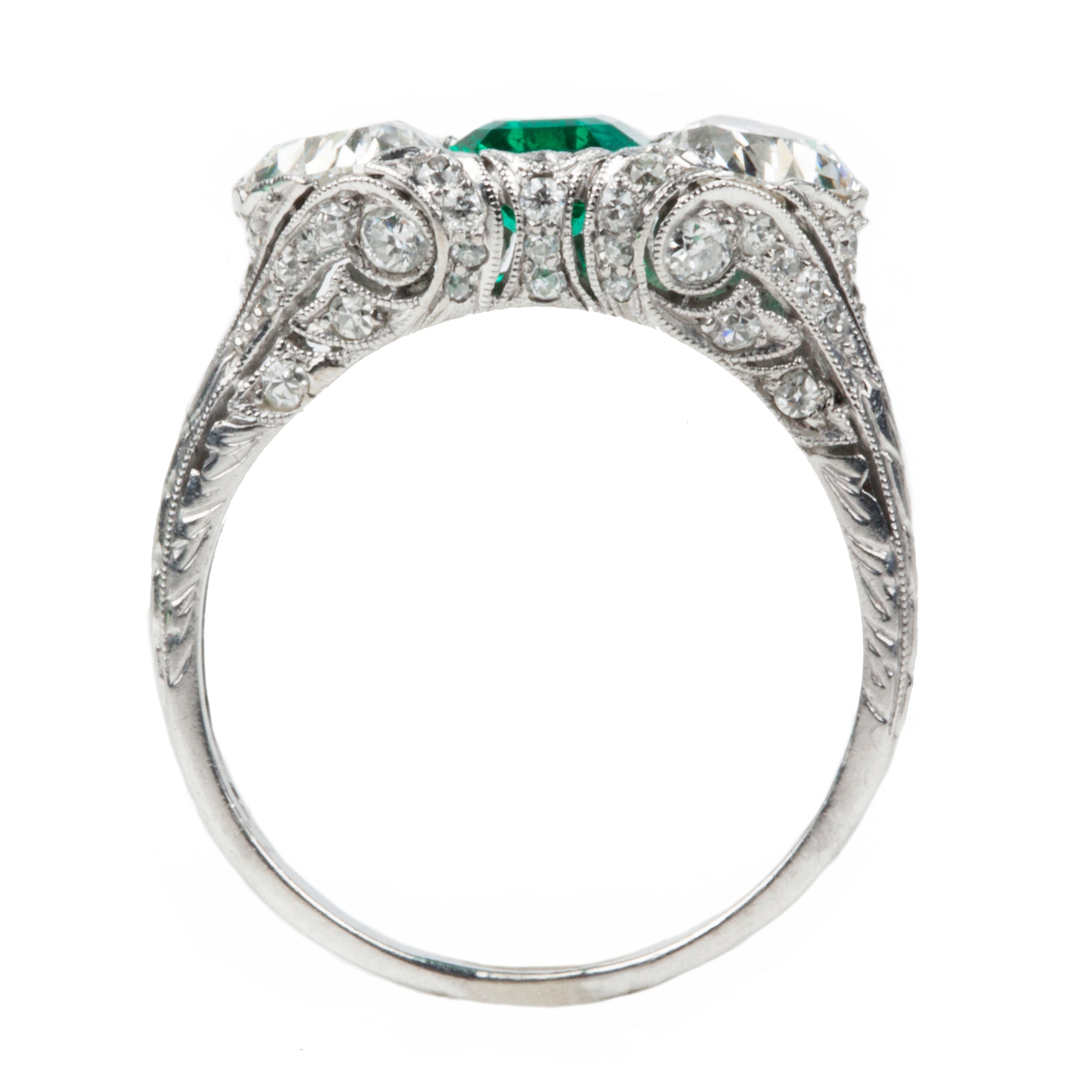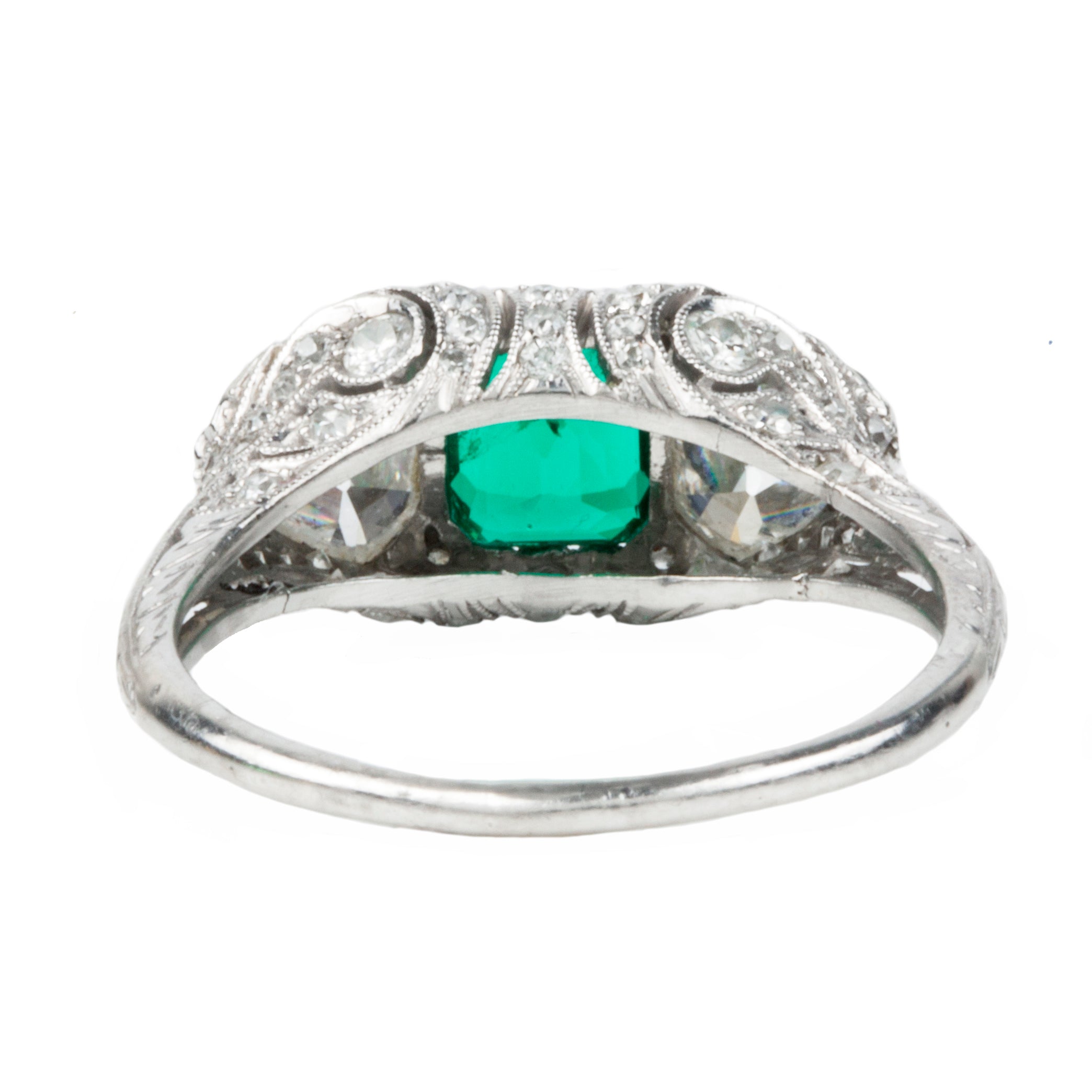 Edwardian Era Emerald and Diamond Ring in Platinum