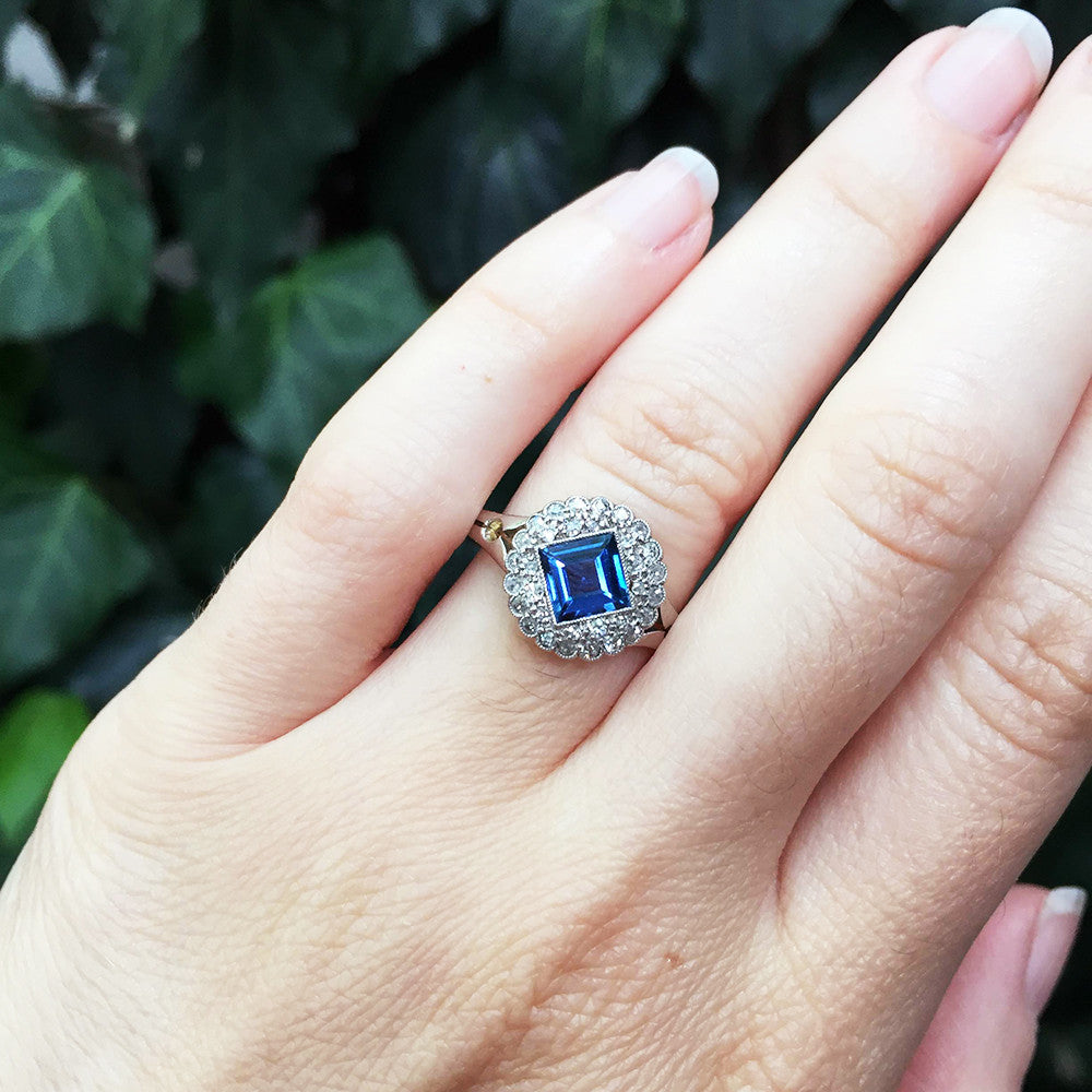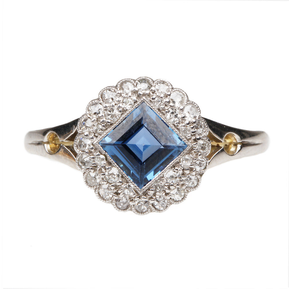 Edwardian Sapphire and Diamond Cluster Ring