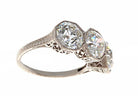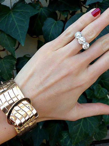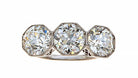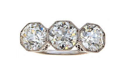 Circa 1910 American platinum diamond ring with three European cut diamonds.