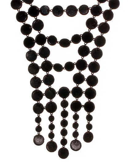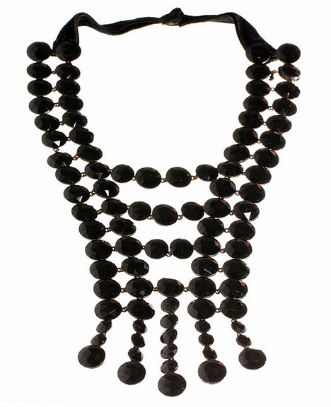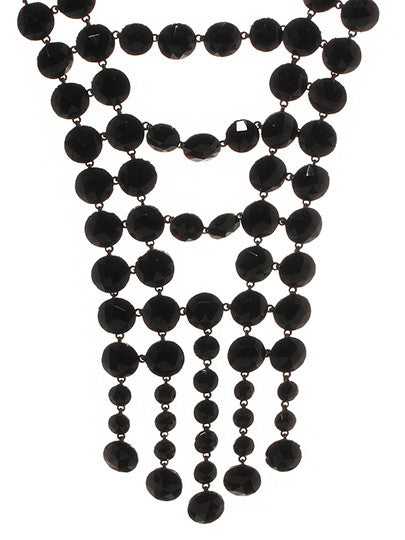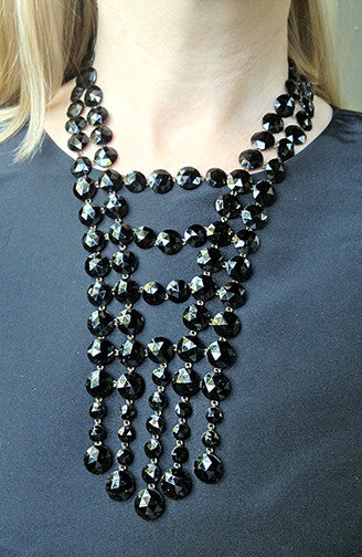 Early Victorian French Jet necklace. True 19th century french jet glass mounted on black enameled metal. See our Field Guide to learn more of the 19th Century fashion for black.