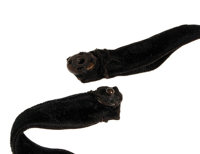 It is difficult to capture in photographs the greatness of this piece. The necklace has the period velvet ribbon and snap closure.