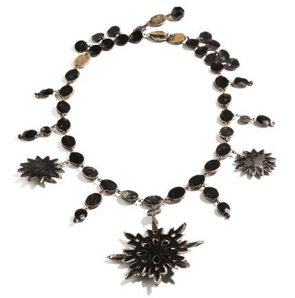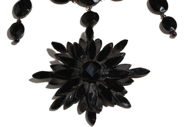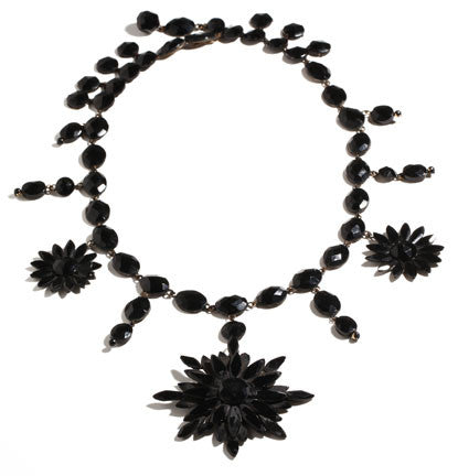 1860's French jet necklace found in London. Necklace is glass on enameled metal.