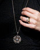 Necklace measures 15" in total length. The largest diamond flower measures 1.50" in diameter. The convertible bracelet measures 7.25" in total length.