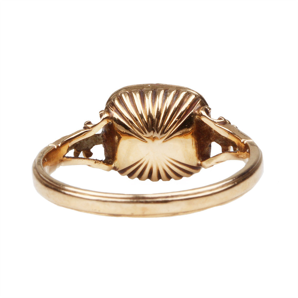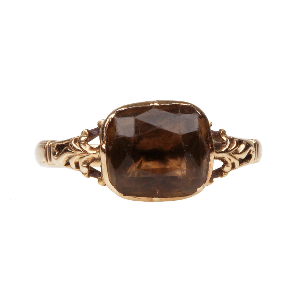Georgian citrine ring, in gold setting. It has a closed back style setting which is typical for Georgian ring. Beautiful reeded detail on back of setting. Circa 1820, English in origin.