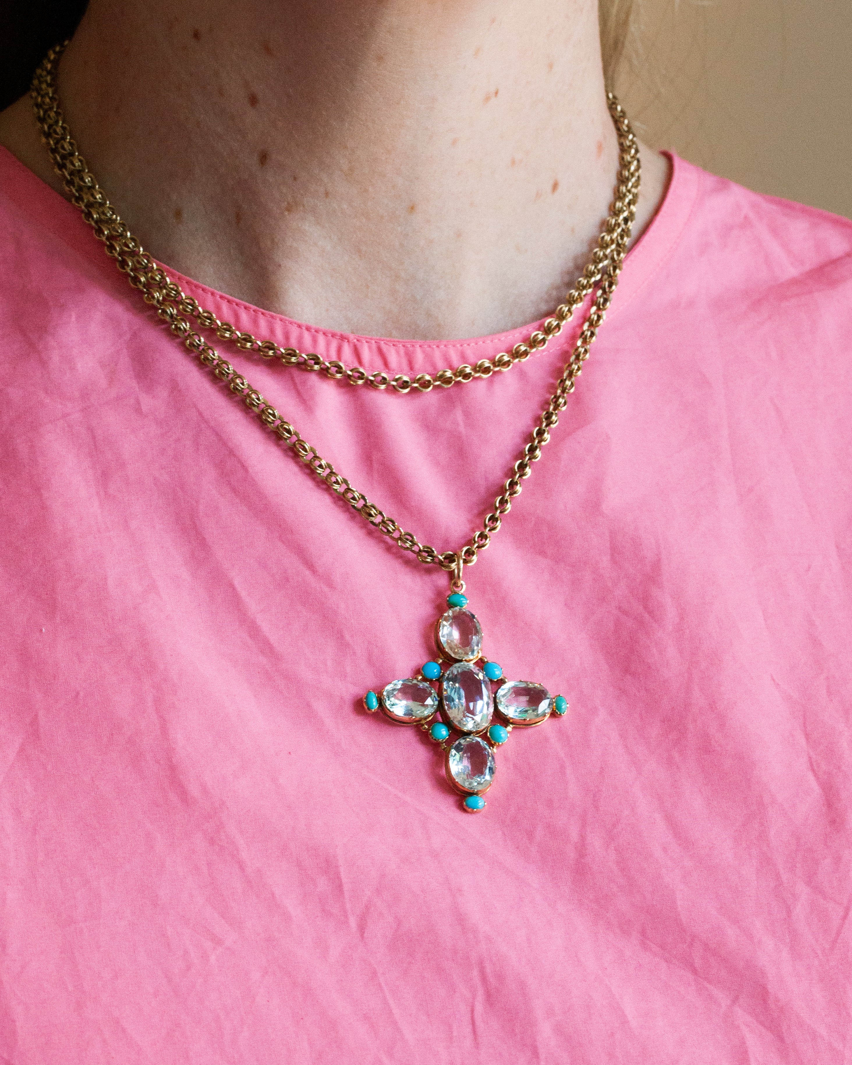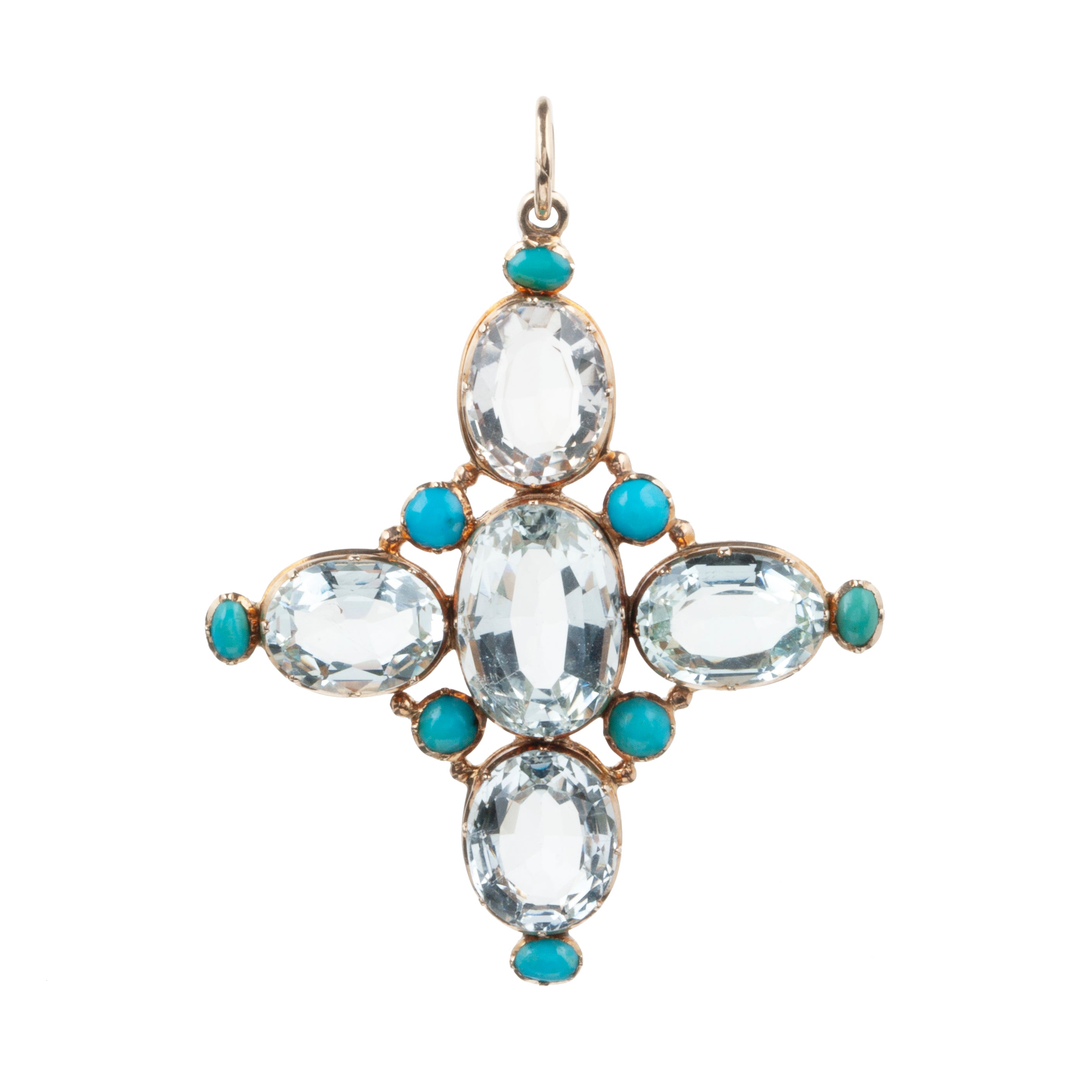 Georgian Era Aquamarine and Turquoise Cruciform Pendant