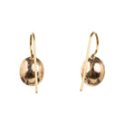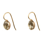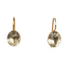 Georgian era oval shaped chrysoberyl earrings, in 18k gold. What were once beautiful Georgian era buttons or cufflinks are now perfect everyday earrings. English in origin. Circa 1820.