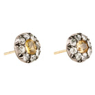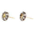 Old mine cut diamonds surround a rich golden citrine stone, set in silver on gold closed-back settings. There are approximately 1.60 carats in total diamond weight, I-L color, and VS2- I1 clarity. The oval citrine stones weigh approximately 1.00. Originally made from a larger piece of jewelry and later converted into earrings. English in origin. Circa 1820.