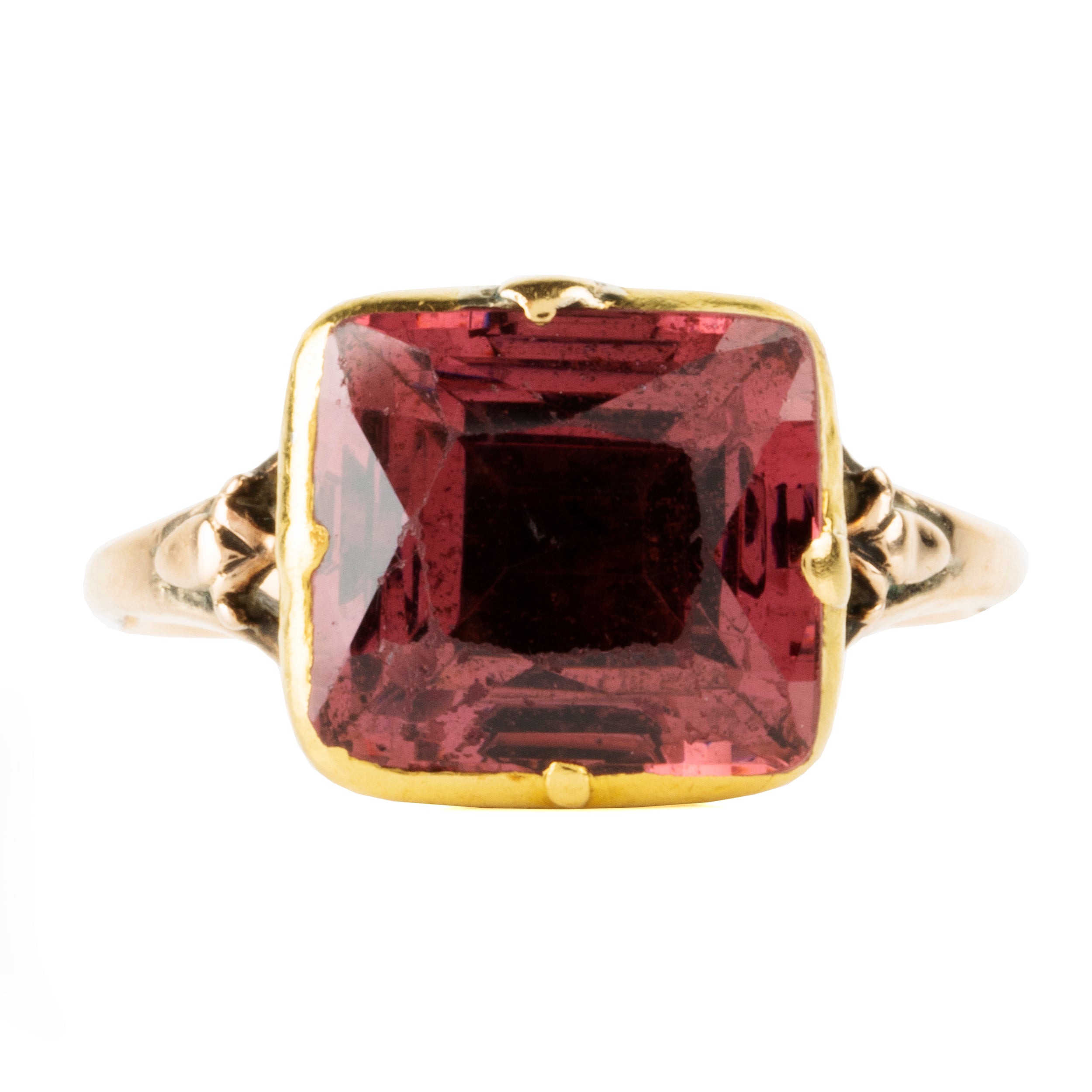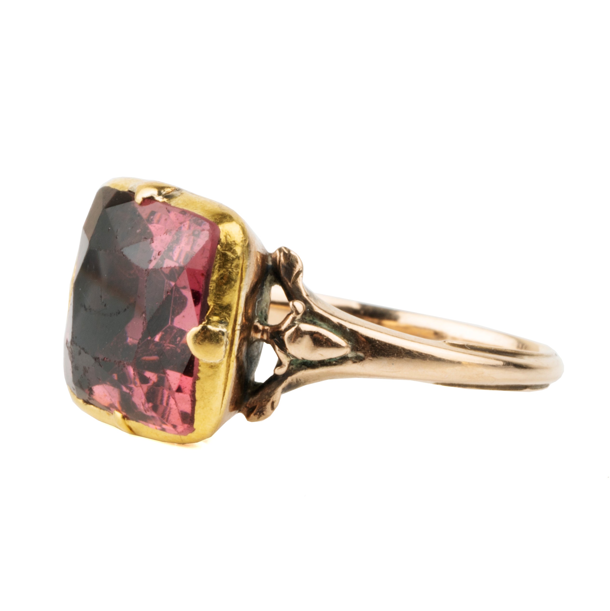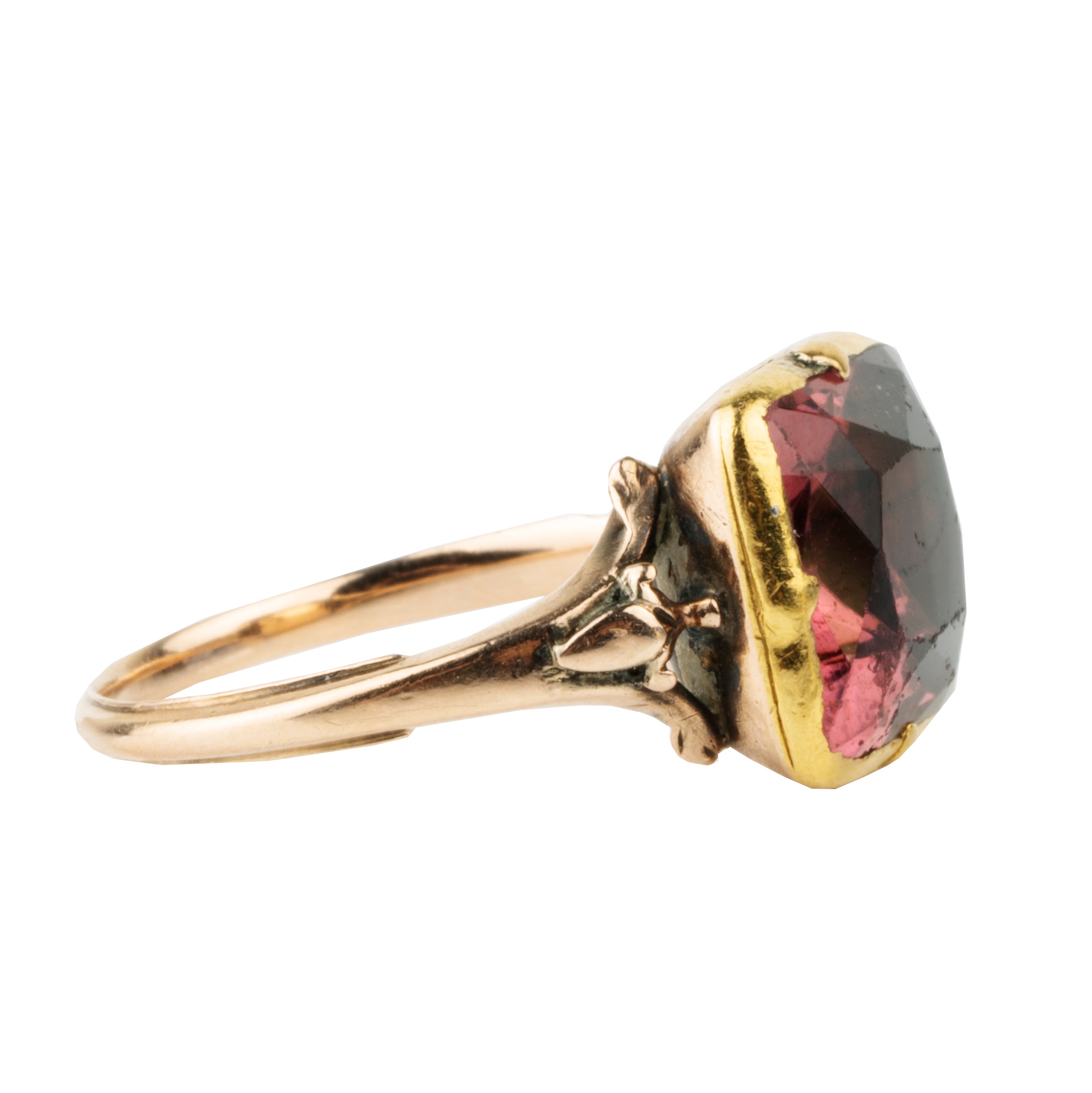 Georgian Era natural red spinel in a simple 18k gold setting. England. Circa 1790.